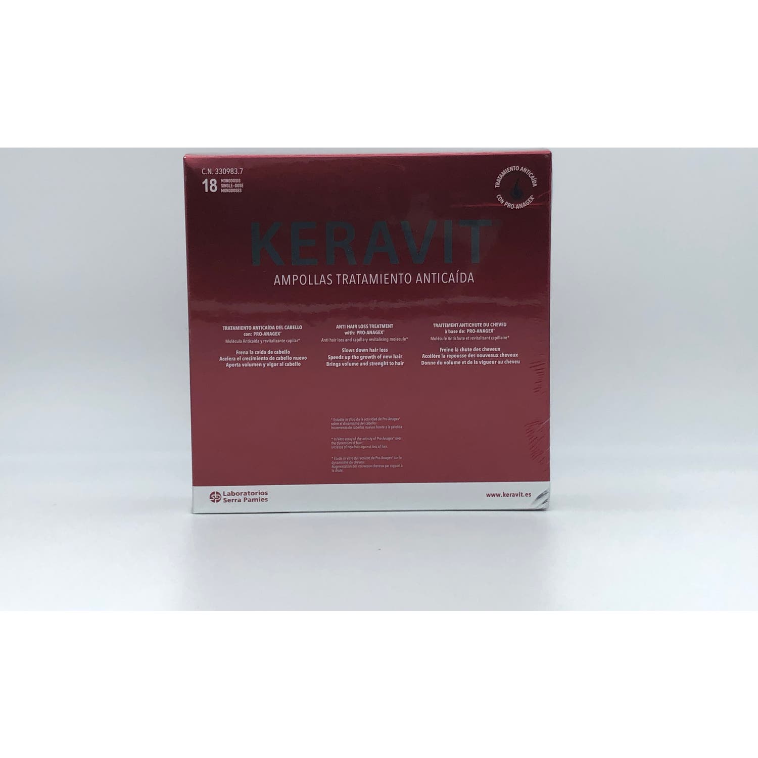 Keravit Ampollas Tratamiento Anticaída 18uds es un tratamiento tópico anticaída con un complejo multivitamínico y Pro-Anagex®.