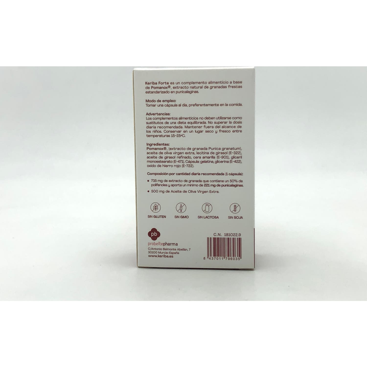 Keriba Forte con Pomanox 30caps es un complemento alimenticio elaborado a partir de granada fresca.