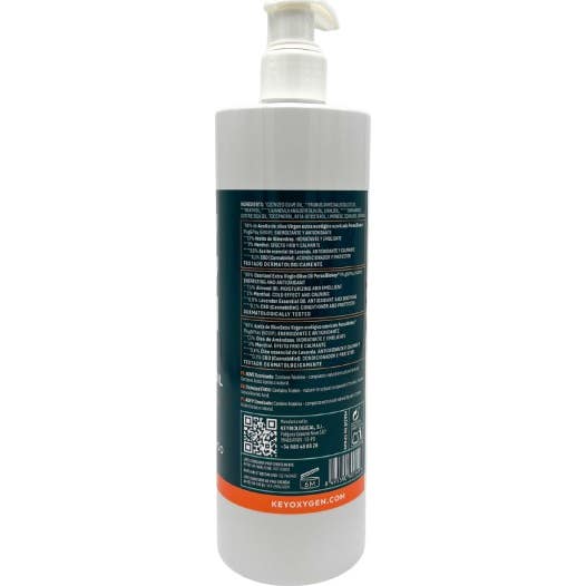 Keyoxygen Sport Massage Oil 500 ml es un aceite muscular diseñado para proporcionar relajación y revitalización. Este producto combina Aceite de Oliva Virgen Extra Ecológico Ozonizado, que actúa como un poderoso humectante, y otros ingredientes que contribuyen al bienestar muscular y a la recuperación tras el ejercicio.