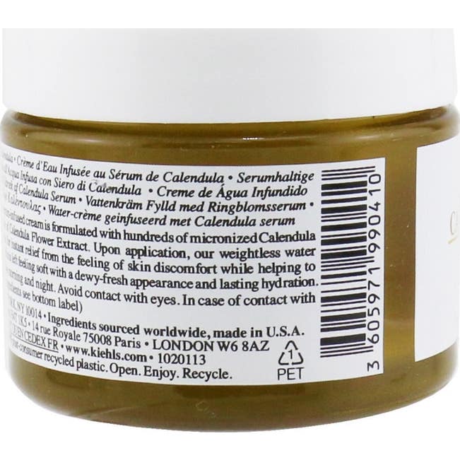 Kiehl's Calendula Serum-Infused Water Cream de 50 ml es una crema hidratante innovadora inspirada en el popular tónico con extracto de caléndula. Esta crema acuosa y ligera está formulada con un sérum concentrado que incluye: