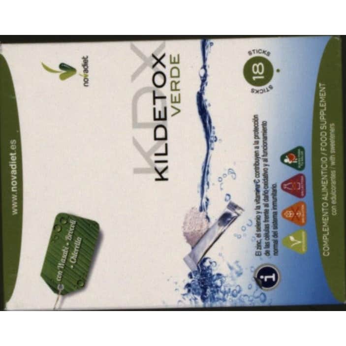Kildetox Verde depurativo 18 sticks es un complemento alimenticio detoxificador del hígado, antioxidante y adelgazante. Está formulado a base de extractos vegetales especialmente recomendados como depurativos y diuréticos: