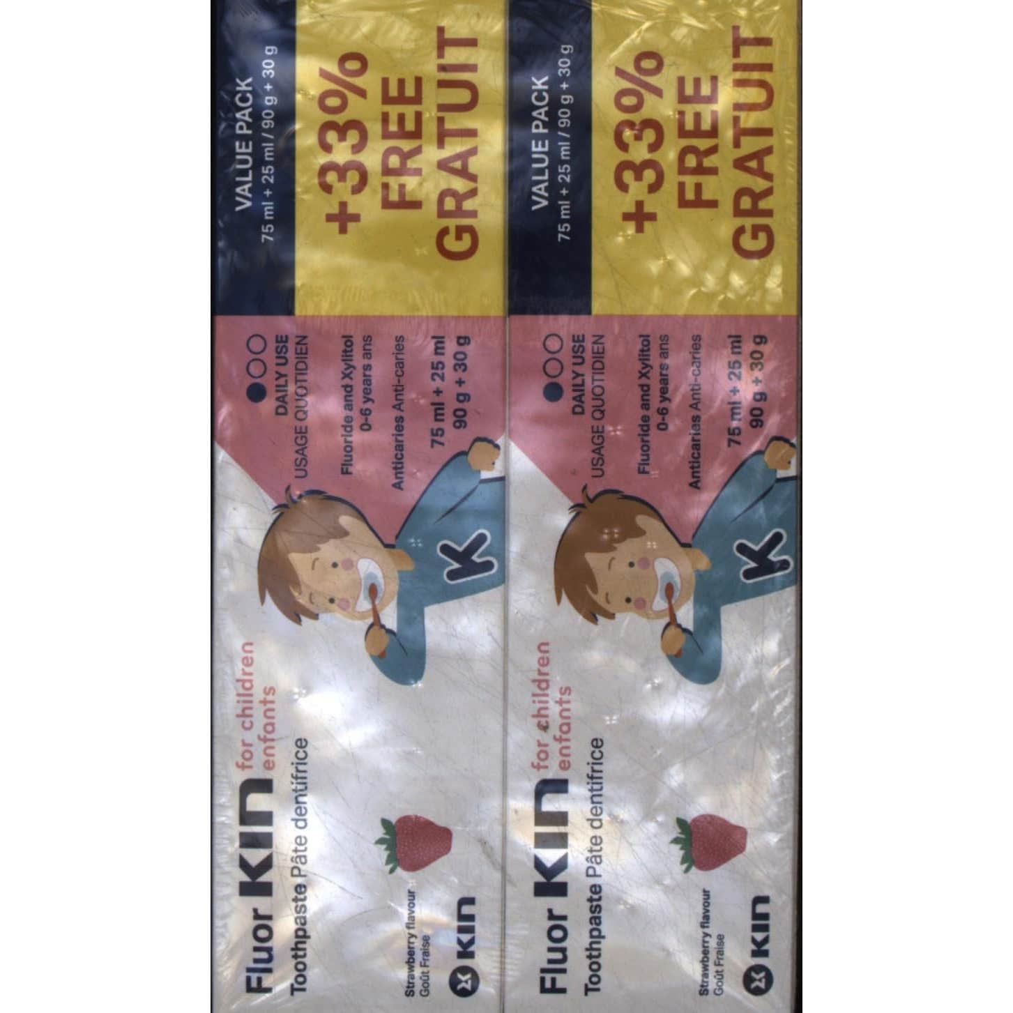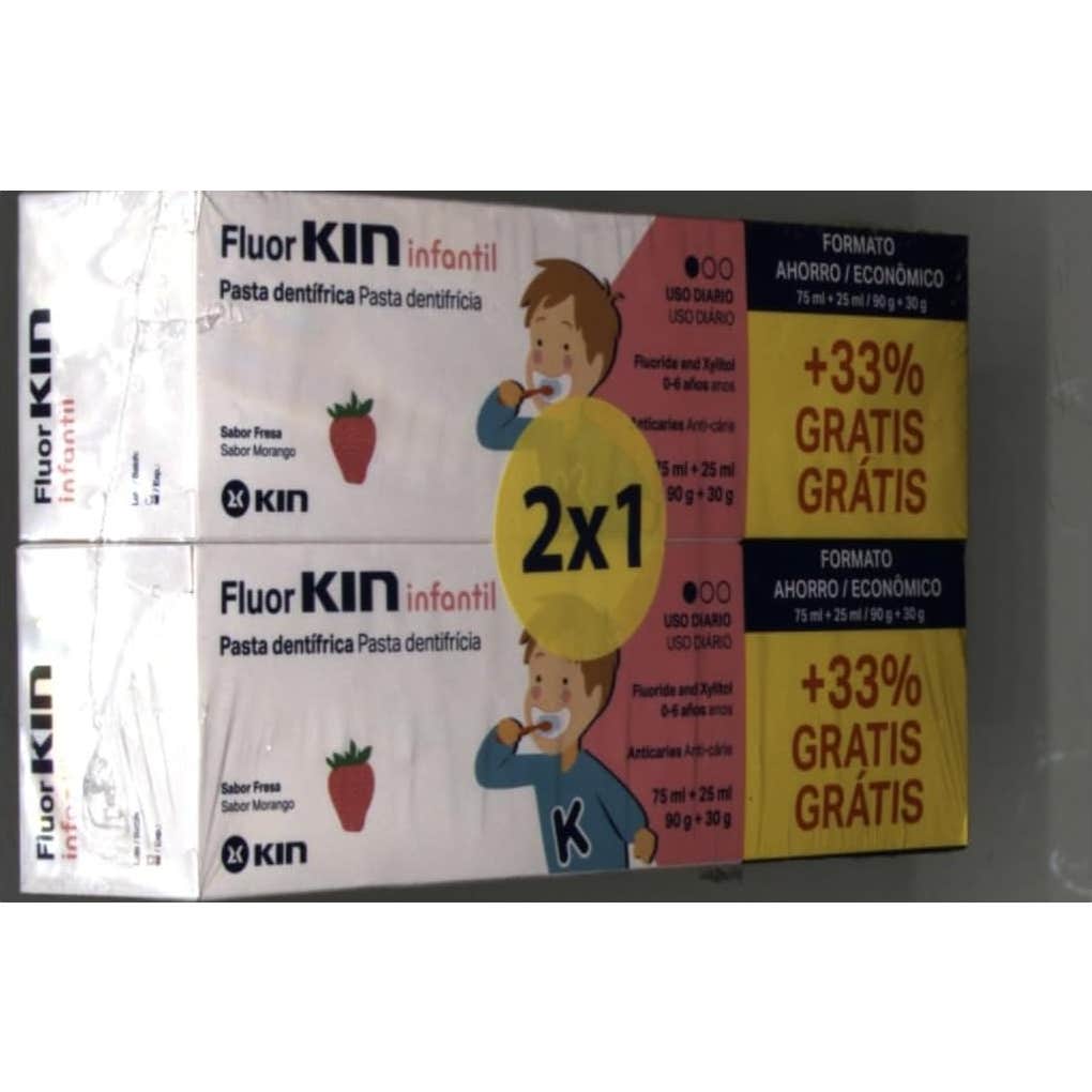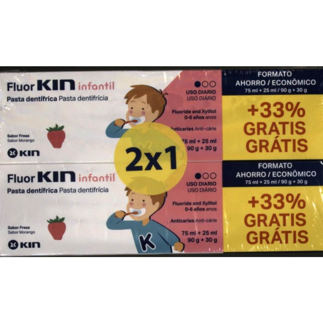 Kin Fluor Infantil Pasta 75 ml + 25ml 2x1 es una pasta dentífrica con agentes anti-bacterianos con un sabor de fresa que les encantará a los más peques.