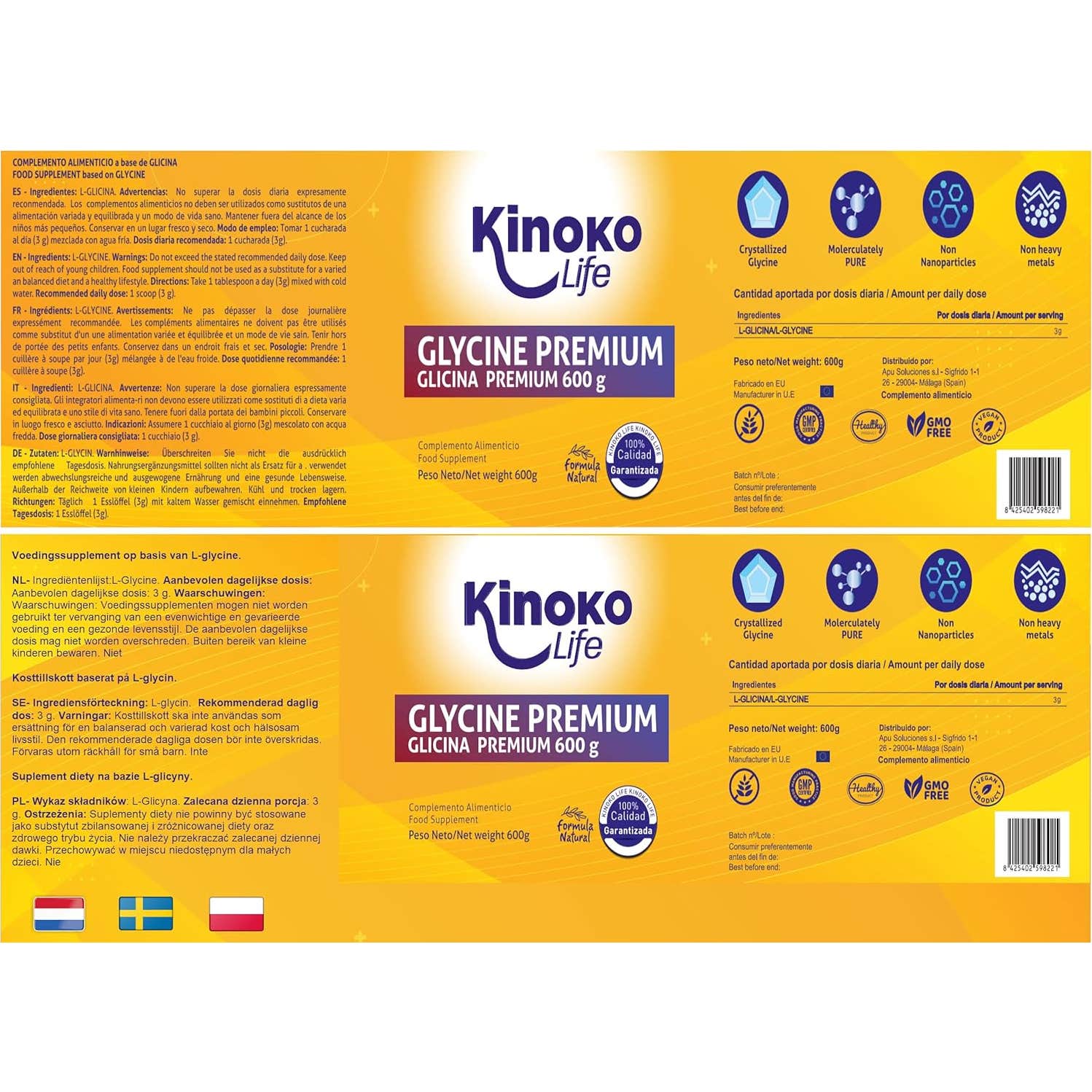Kinoko Life Glicina Premium 600 g es un producto de alta calidad, compuesto por glicina cristalizada de forma molecular. Este aminoácido esencial se presenta sin: