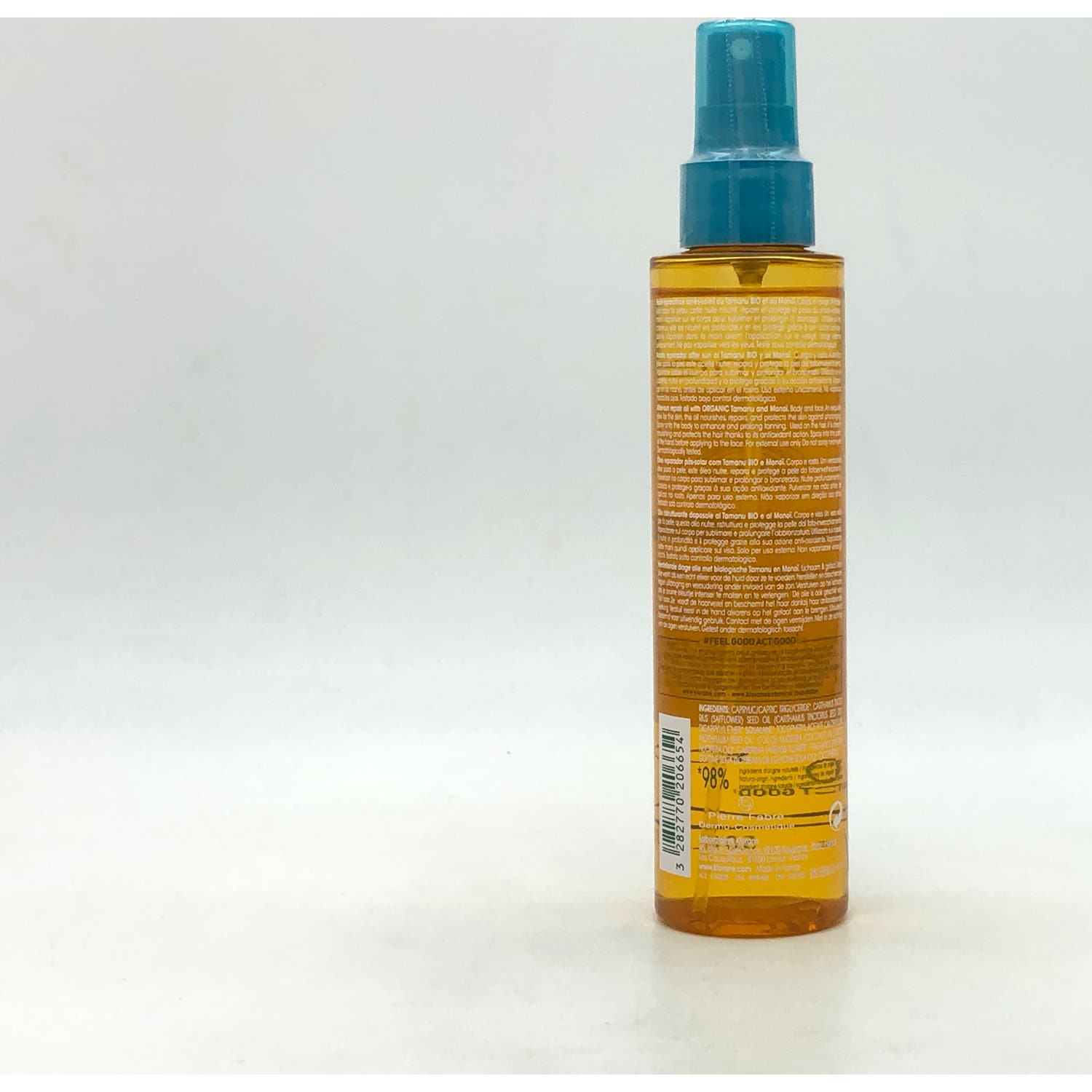Klorane aceite Reparador after Sun 150 ml es un aceite no graso que ayuda a reparar la piel tras la exposición solar y a prolongar el bronceado. Está formulado con Monoï de Taití DO, aceite de Tamanu Bio, aceite de Cártamo nutritivo y vitamina E antioxidante, que ayudan a nutrir y reparar la piel. Asimismo, ayudan a proteger la piel de la acción de los radicales libres causantes de la oxidación cutánea y a evitar así el fotoenvejecimiento.