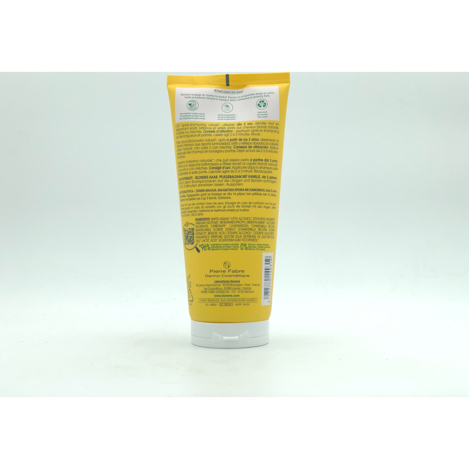 Klorane Bálsamo Manzanilla 200ml es un acondicionar en formato bálsamo indicado para cabello rubio, formulado con extracto de camomila. Está desarrollado para ayudar a reparar, iluminar y desenredar instantáneamente el cabello rubio.