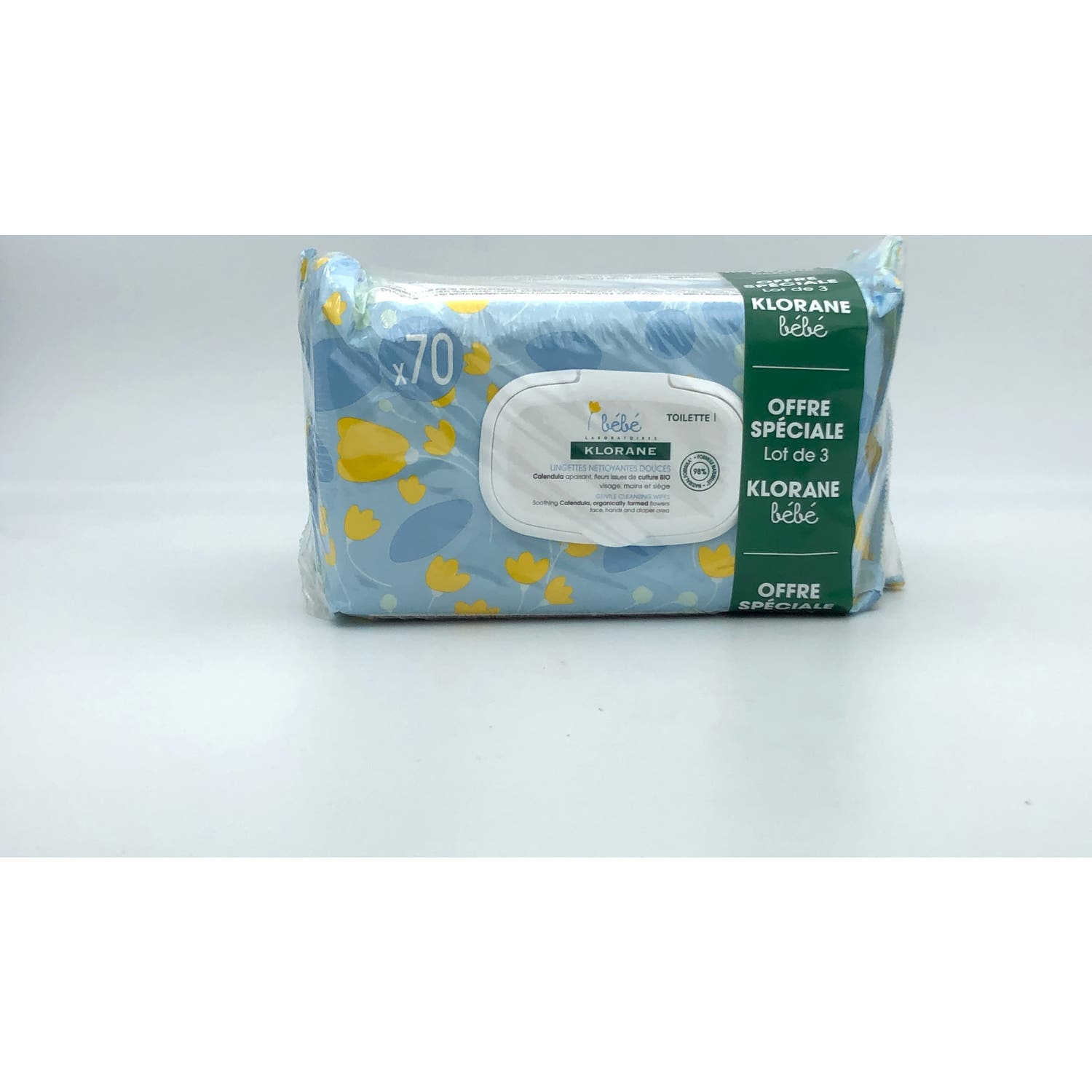 Klorane Trío Toallitas Limpiadoras Suaves 3 x 70 und son unas toallitas limpiadoras a base de caléndula que limpian la cara, manos y el culito del bebé.