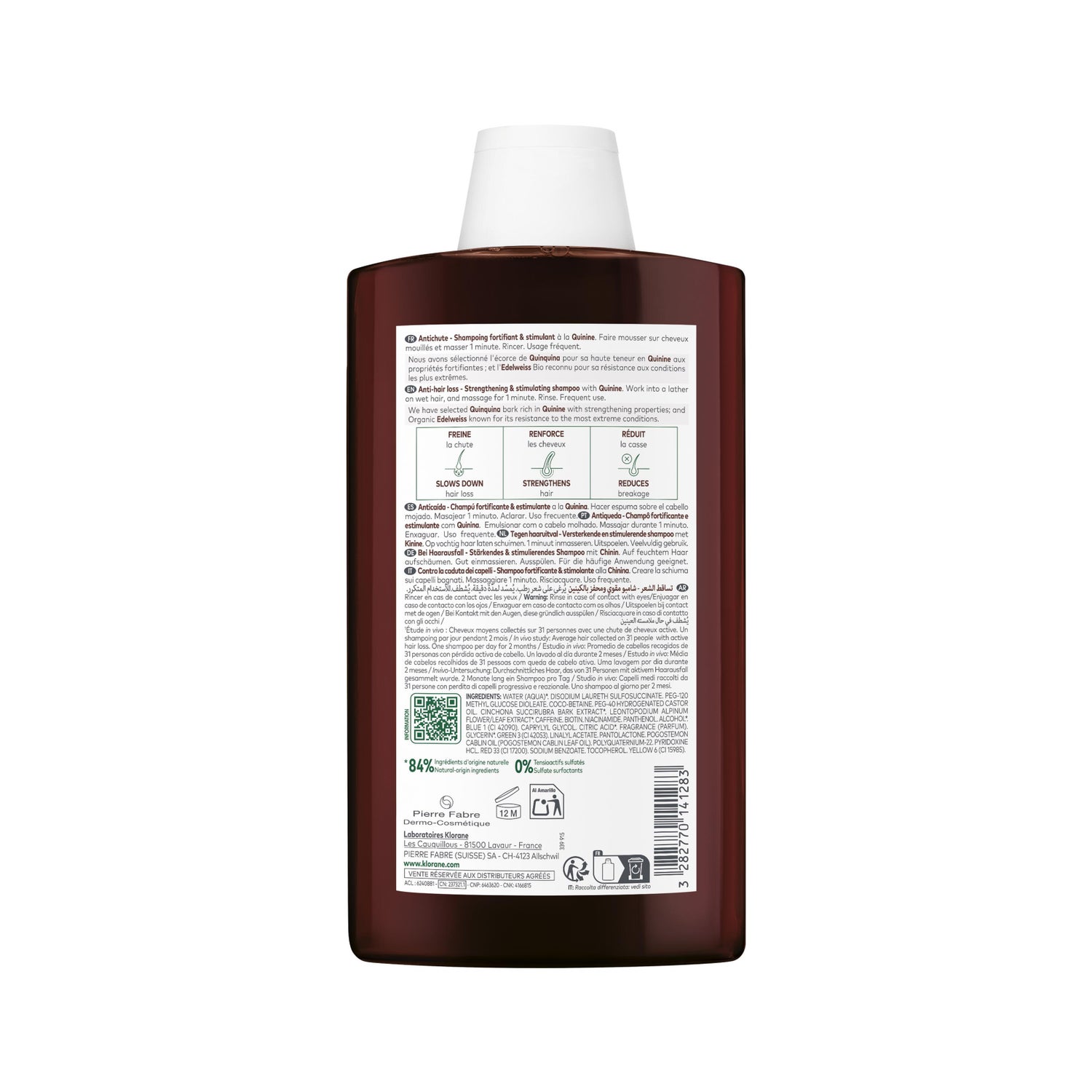 Klorane Champú a la Quinina Anticaída Fortificante & Estimulante 400 ml es un champú que ayuda a sanearlo, ya que estimula el crecimiento del cabello y le devuelve su fuerza y tono.