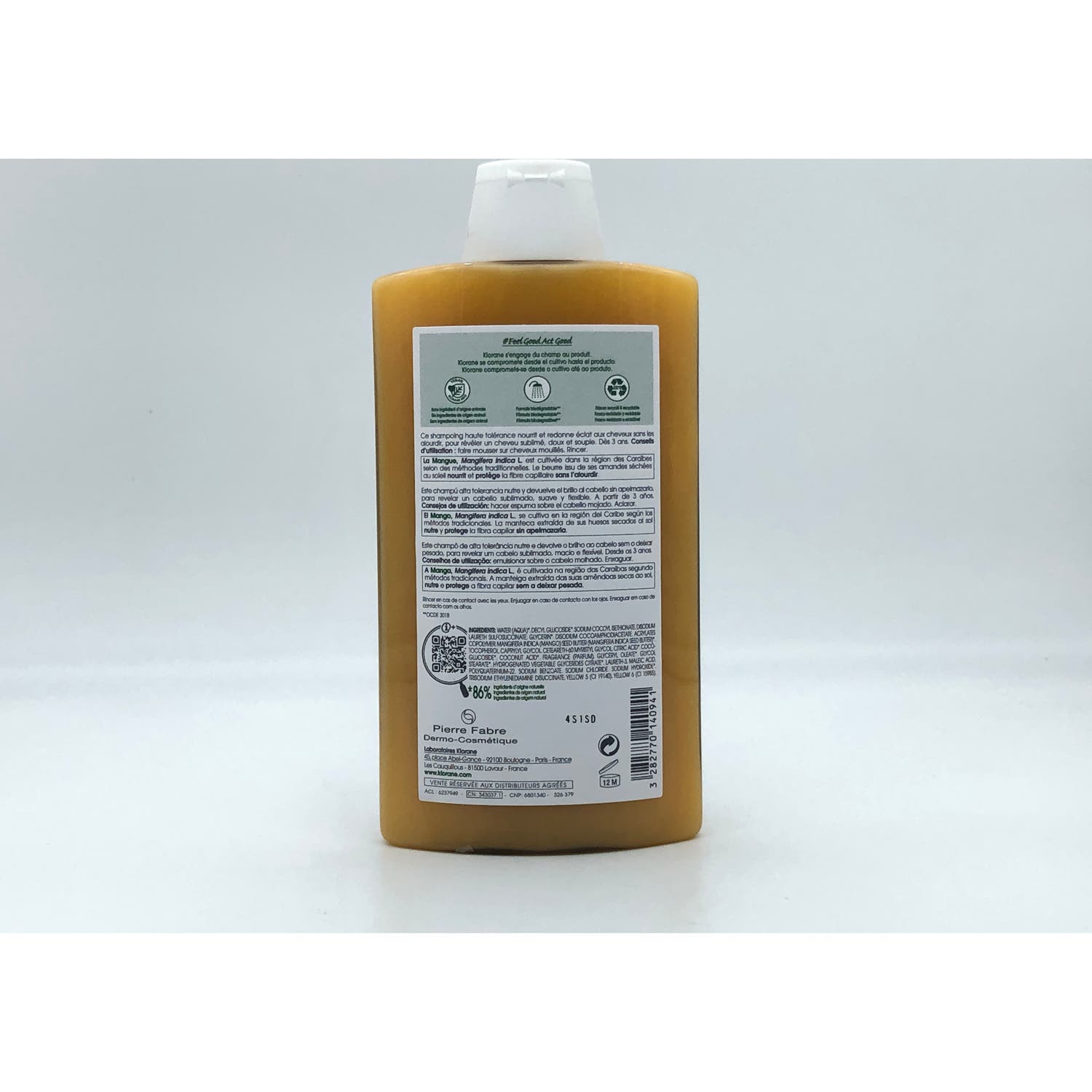Elaborado a base de 86% de ingredientes de origen natural como una base limpiadora biodegradable y suave que facilita la limpieza capilar. Además de manteca de mango, un activo vegetal con ácidos grasos que ayuda a nutrir el cabello sin apelmazarlo.