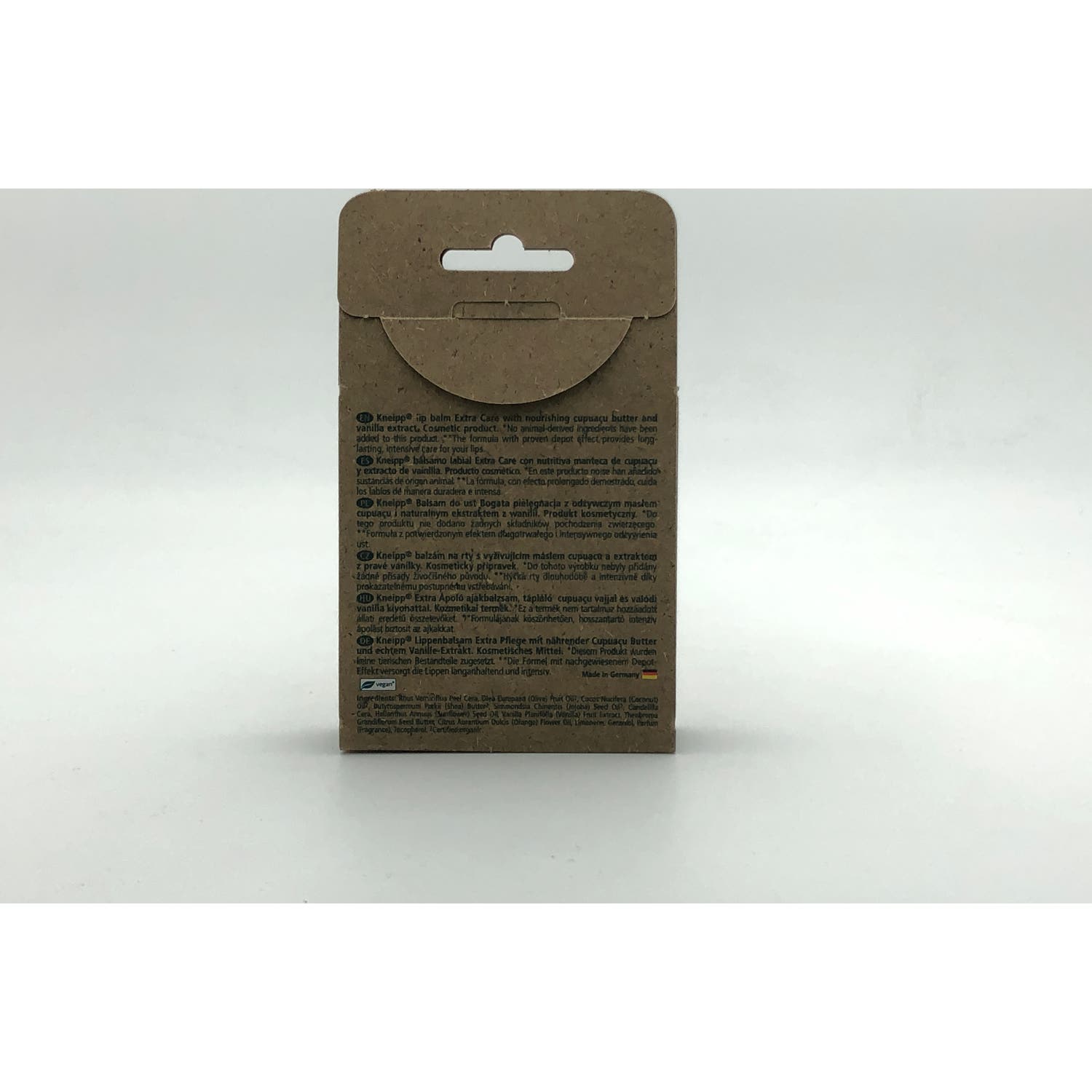 Kneipp bálsamo labial extra care vainilla y cupuaçu 4,7g es un bálsamo labial 100% natural que contiene manteca de cupuaçu y extracto de vainilla. Proporciona un cuidado intensivo a los labios, envolviéndolos con un suave aroma a vainilla. Su fórmula de efecto prolongado cuida los labios de manera duradera e intensiva.