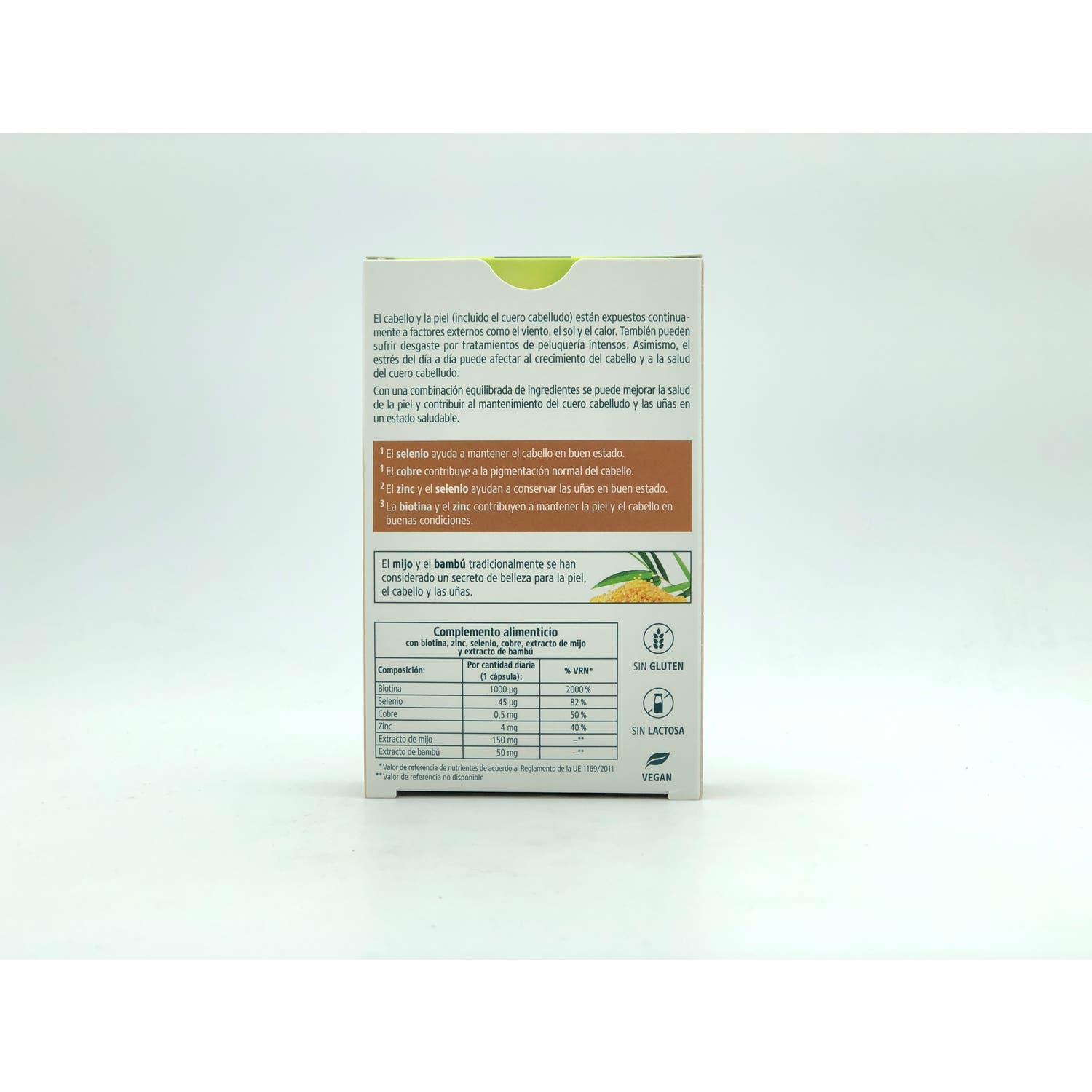 Extracto de mijo perla (39 %), relleno: celulosa microcristalina; hidroxipropilmetilcelulosa (cápsula), extracto de bambú (13 %), óxido de zinc, agente antiaglomerante: óxido de silicio y estearato de magnesio; sulfato de cobre (II), D-biotina, L-selenometionina.
