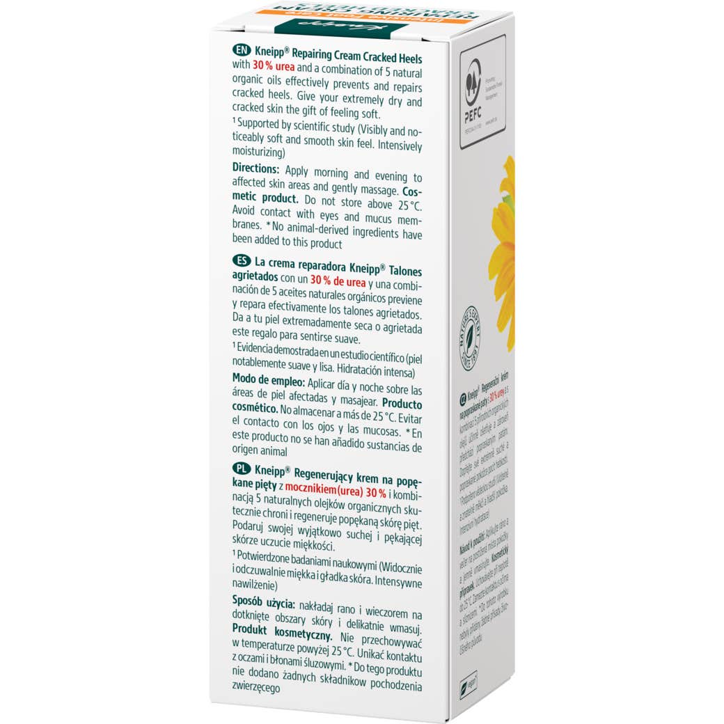 Kneipp Crema Reparadora Talones Agrietados 50 ml es una solución diseñada para reparar y prevenir las grietas en los talones. Esta crema contiene un 30% de urea, un componente eficaz para la hidratación y renovación de la piel.