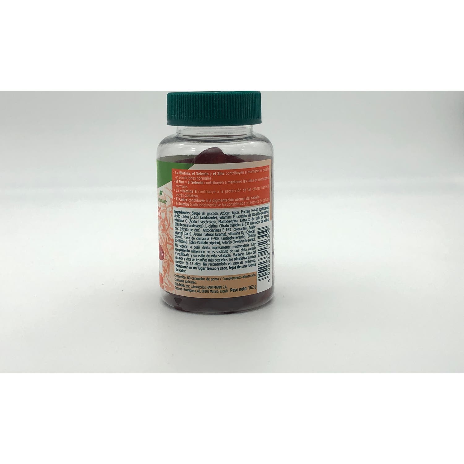 Formulado con biotina, vitamina B3, vitamina E, cobre, zinc, selenio, L-cisteína y bambú, componentes que contribuyen a mantener el cabello y las uñas en buenas condiciones.