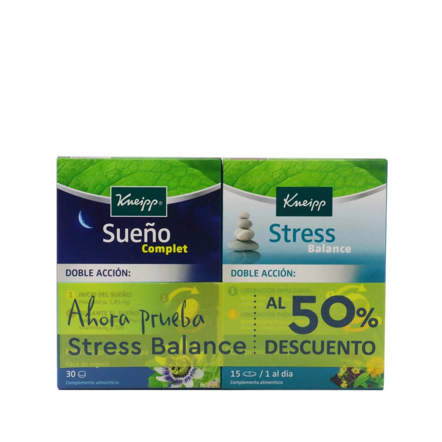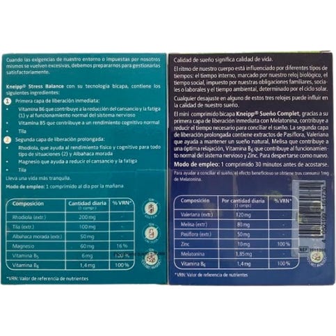 Duplo de complementos alimenticios indicados para mantener un descanso reparador. Contiene 30 cápsulas de liberación inmediata con una fórmula a base de raíz de valeriana, melisa, pasiflora, melatonina y vitamina B6. El pack se completa con 15 comprimidos especialmente desarrollados para mantener el bienestar físico y mental. Ayuda a la disminución de la sensación de cansancio y apoya el funcionamiento normal del sistema nervioso.