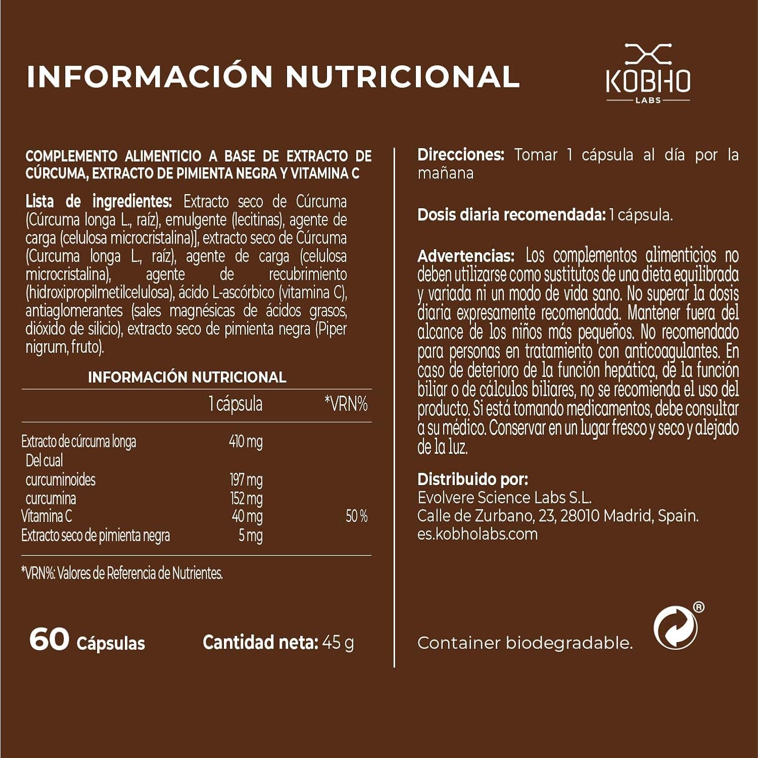 Su fórmula incluye ingredientes como extracto seco de cúrcuma y pimienta negra, entre otros. Se recomienda consultar a un profesional para su uso adecuado.