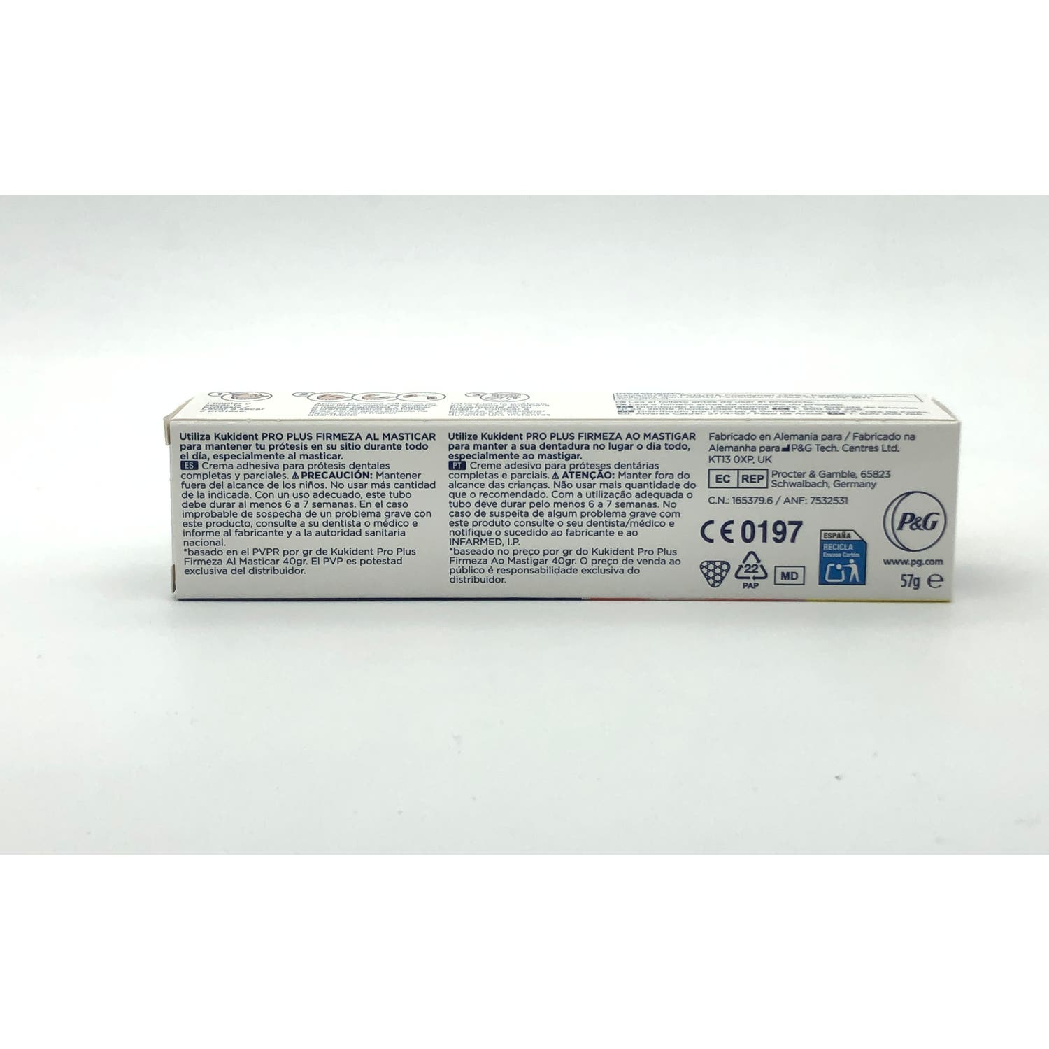 Kukident Pro Plus Firmeza al Masticar 57g es una crema adhesiva de fijación extra para prótesis dentales totales o parciales.