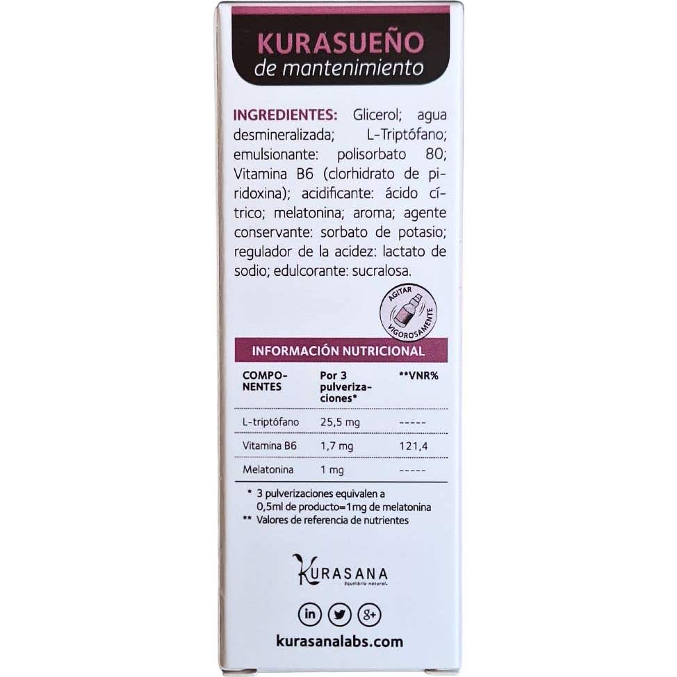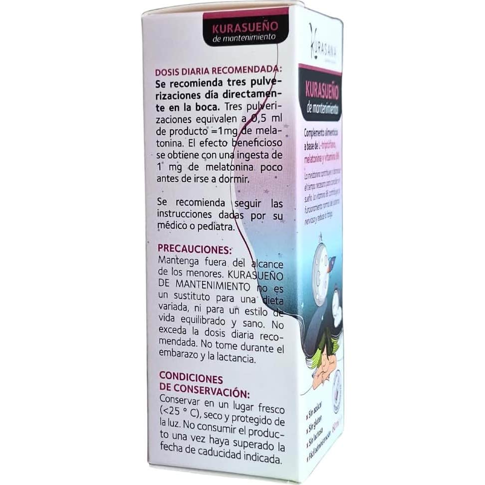 Complemento alimenticio en formato spray, elaborado a base de melatonina, triptófano y vitamina B6, que contribuye a mejorar el tiempo de conciliación del sueño y el estado de ánimo.