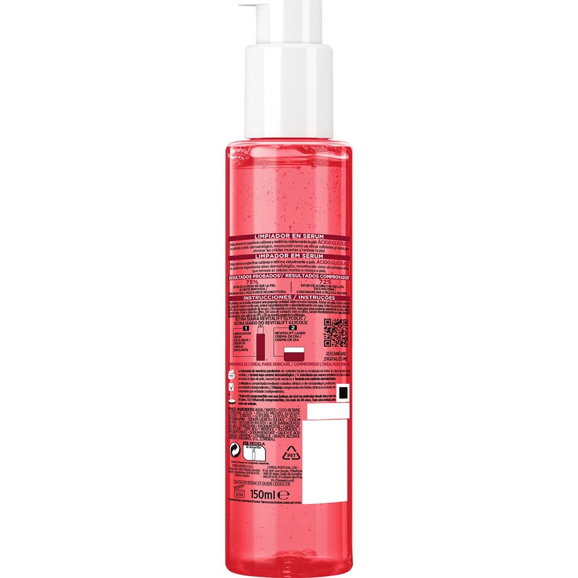 L'Oréal Revitalift Exfoliante Limpieza en Sérum es un limpiador avanzado que combina la eficacia del ácido glicólico en su formulación al 3,5%. Este ingrediente activo, reconocido en el ámbito dermatológico, actúa como un exfoliante sin perlas, permitiendo la eliminación de las células muertas de la piel de manera efectiva.