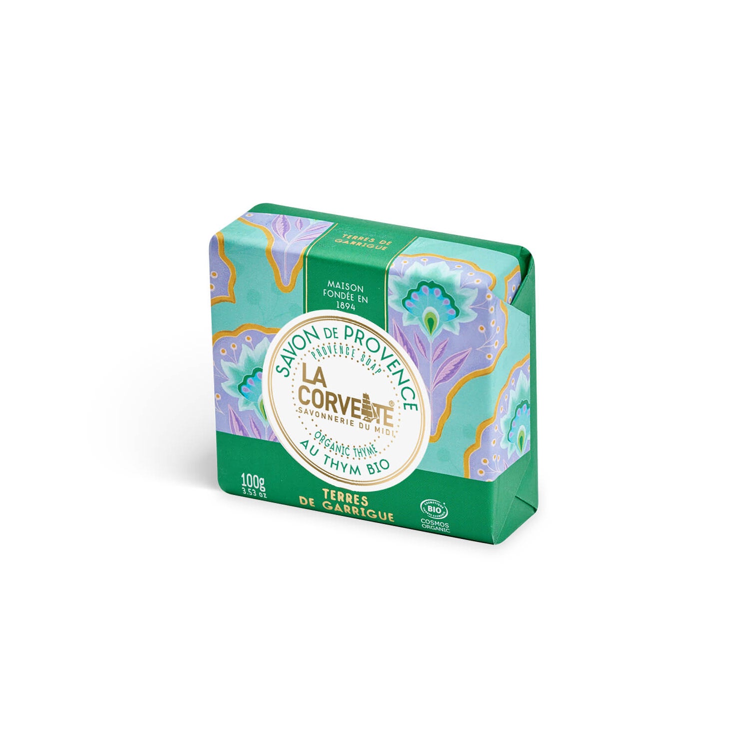 La Corvette Jabón de Provenza Tierras de Garriga 100g es un producto elaborado exclusivamente con aceites vegetales de oliva y copra, provenientes de la agricultura ecológica. Este jabón se produce en una fábrica centenaria, garantizando que no contiene aceite de palma ni colorantes artificiales.