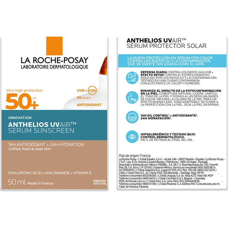 La Roche Posay Anthelios UVAir Color Medium SPF50+ 50 ml es un sérum solar que proporciona una protección altamente eficaz contra los rayos UVA y UVB, al mismo tiempo que unifica el tono de la piel. Este producto de La Roche-Posay está diseñado para aquellos que desean una defensa solar superior sin renunciar a un acabado natural y radiante.