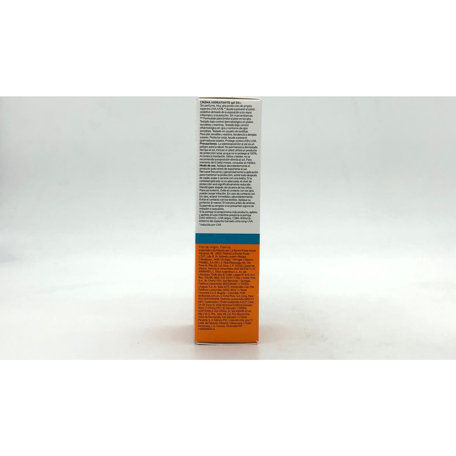 Su factor de protección solar elevado SPF50+ reforzada contra la radiación UVA, evitará el daño de la piel a consecuencia de la exposición solar. Además, incorpora agua termal de La Roche-Posay, con efectos antioxidantes y calmantes.