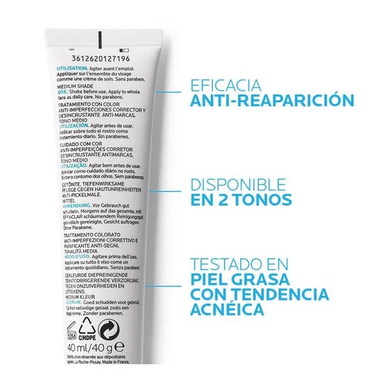 La Roche-Posay Effaclar Duo + M Unifiant Tono Medio 40ml es un tratamiento facial unificador y antiimperfecciones con un toque de color.