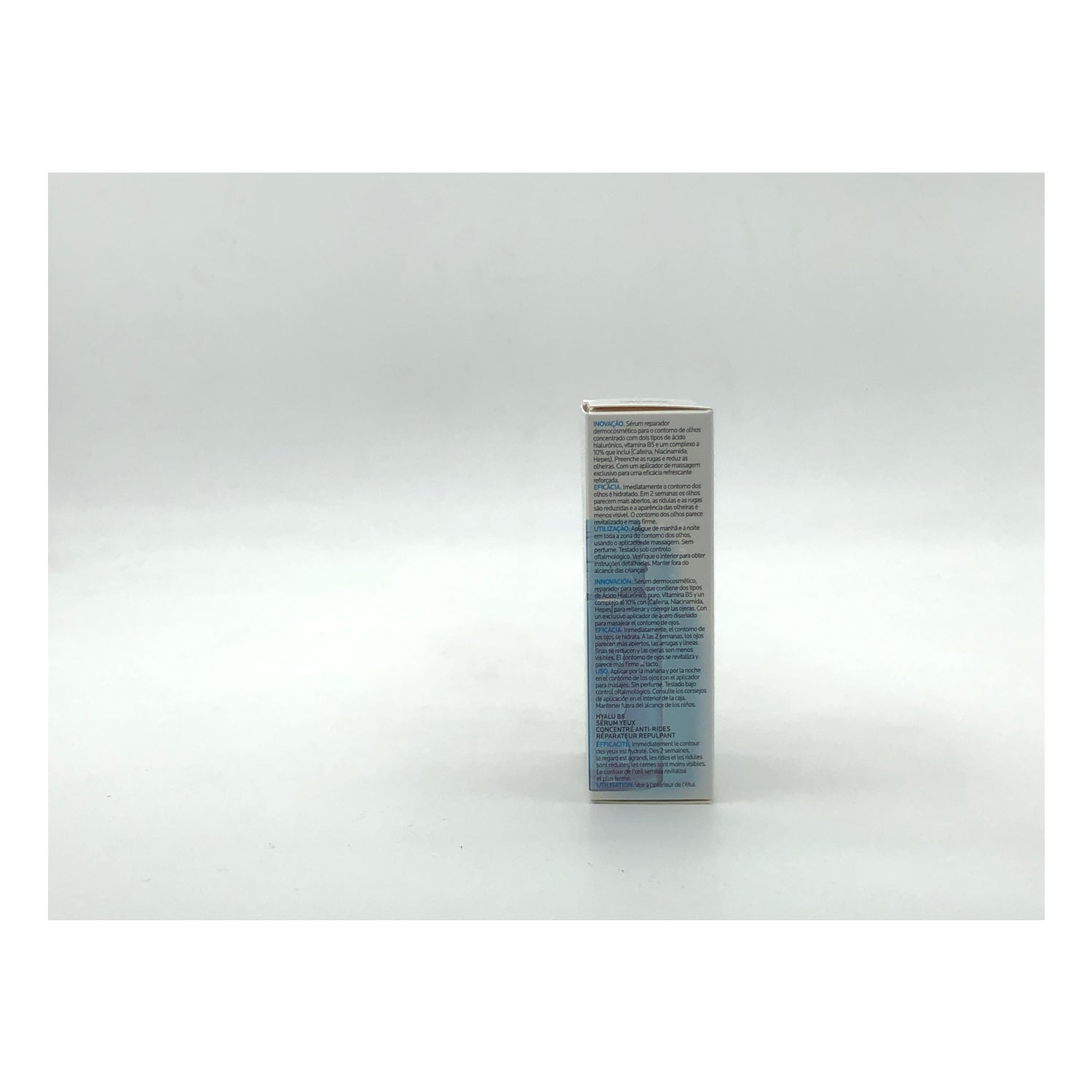 Está indicado para todo tipo de pieles, incluso las más sensibles. Está formulado con ácido hialurónico, cafeína y niacinamida, ingredientes que ayudan a rellenar las arrugas y a corregir las ojeras.