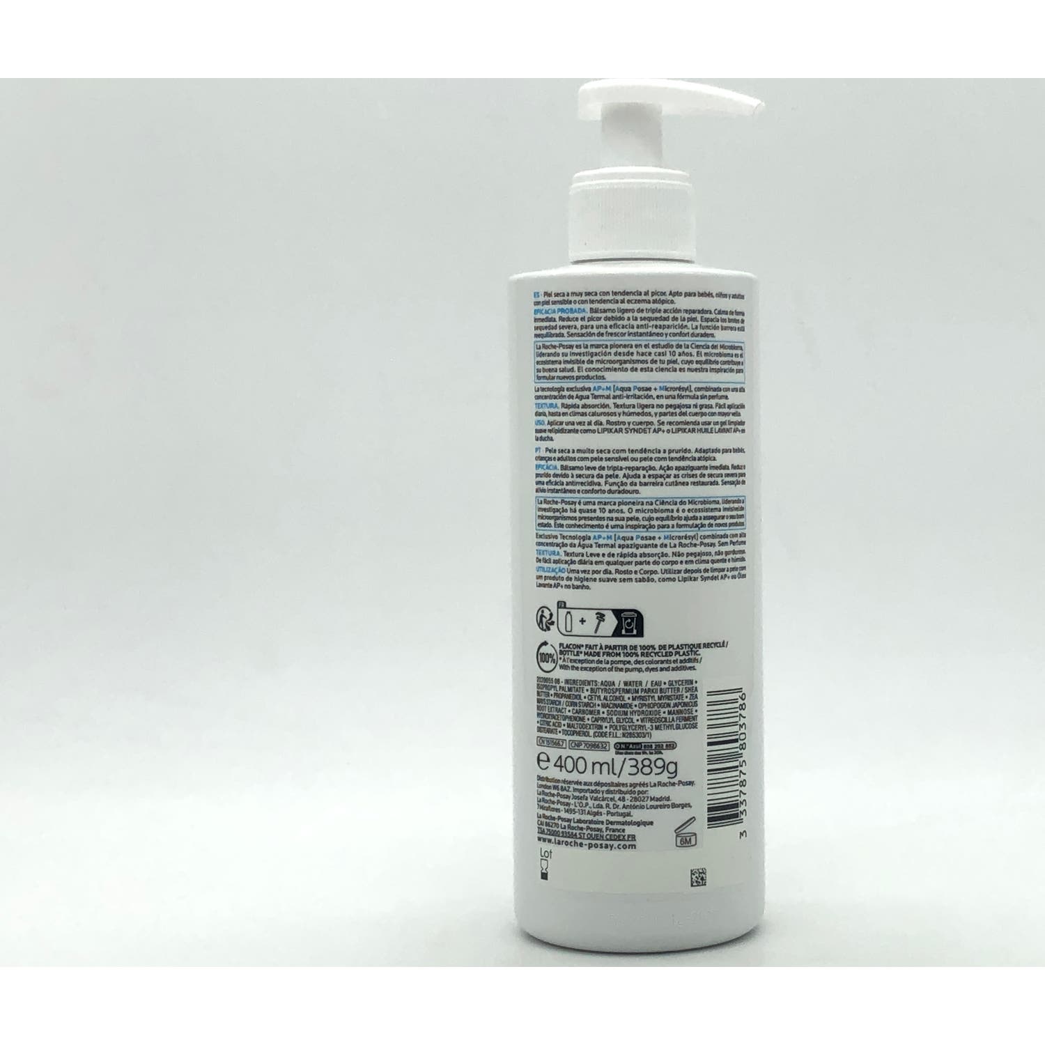 La-Roche Posay Lipikar Baume Light AP+M 400ml es un bálsamo corporal calmante que ayuda a reequilibrar el microbioma y a aliviar los picores.