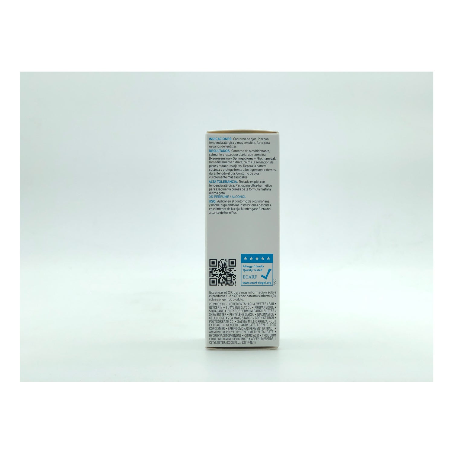 Está formulado con Sphingobioma, Niacinamida, Neurosensina y Agua Termal de La Roche-Posay, naturalmente antiirritante. Además, ayuda a proteger la barrera cutánea, y su textura es ultraligera y fresca.