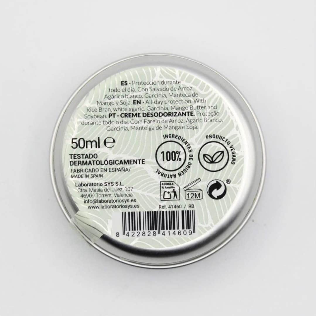 Desodorante en crema que contribuye a reducir la sudoración y a eliminar el mal olor de la piel. Su fórmula natural y vegana contiene principios activos como agárico blanco, aceite de jojoba, salvado de arroz, garcinia, zinc y magnesio. Esta combinación facilita la transpiración sin obstruir los poros y suaviza la piel, al mismo tiempo que ayuda a aumentar la elasticidad, suavidad y firmeza de la piel. Apto para pieles sensibles.