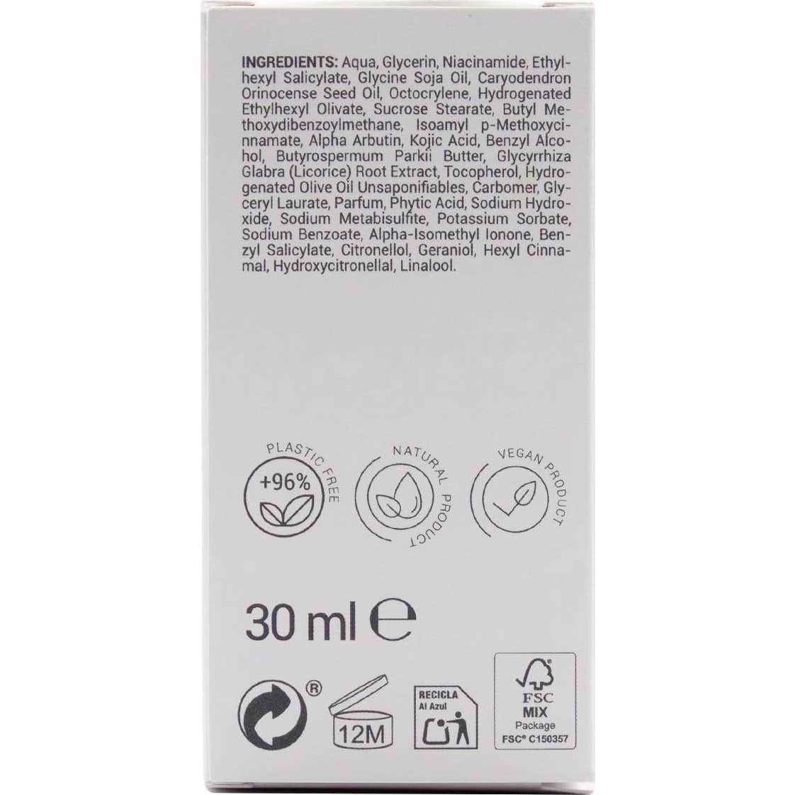 Sérum facial que ayuda a unificar el tono de la piel. Su fórmula contribuye a prevenir la aparición de manchas y eliminar las existentes, así como las manchas y cicatrices producidas por el sol. Contiene además filtros solares SPF15, que ayudan a proteger la piel de altas temperaturas.