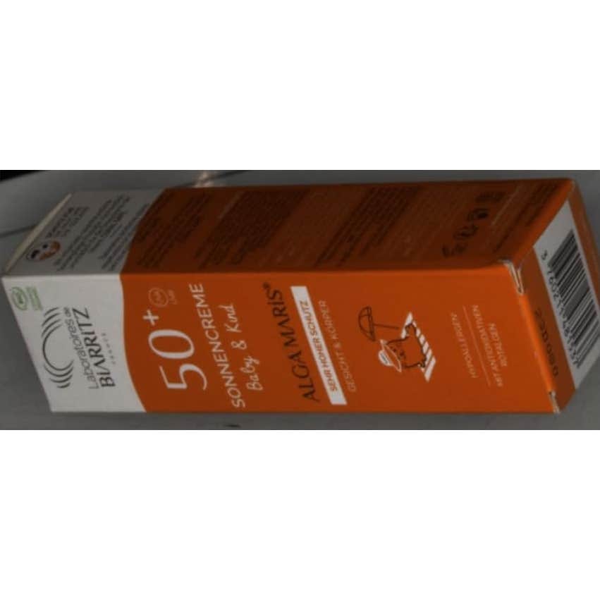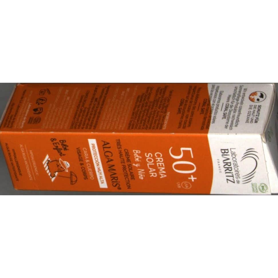 Laboratoires de Biarritz Crema Solar SPF50+ Alga Maris 100ml es una crema protectora apta para infantes a partir de los 12 meses que ayuda a proteger la piel de los rayos UV, gracias a sus filtros fotoestables SPF50+. Además, es resistente al agua y no deja efecto blanco.