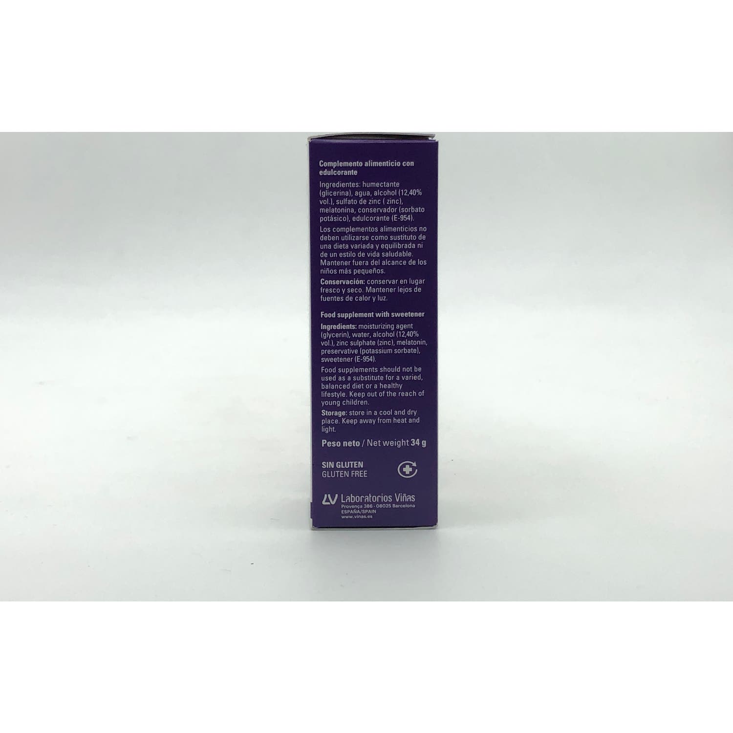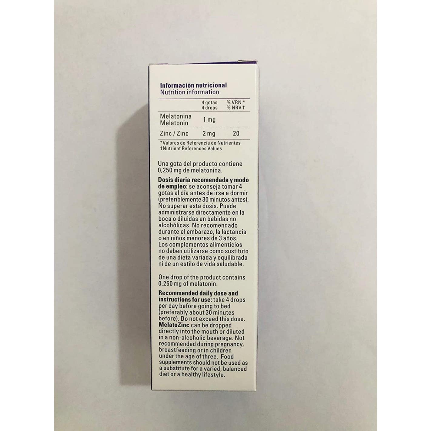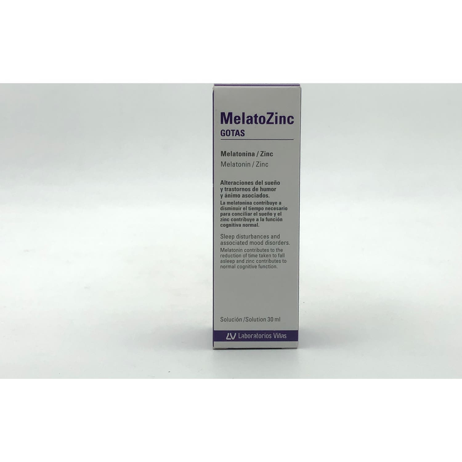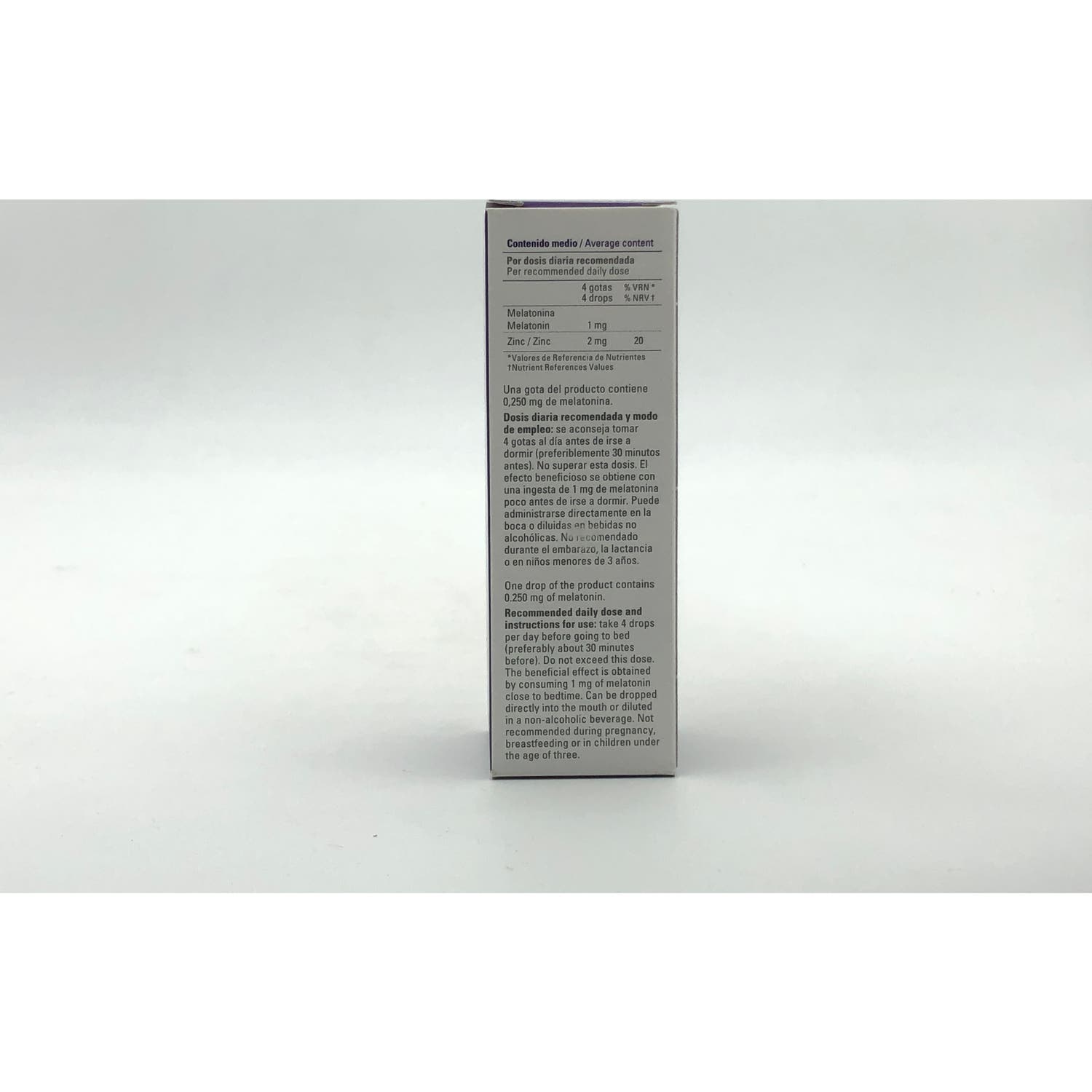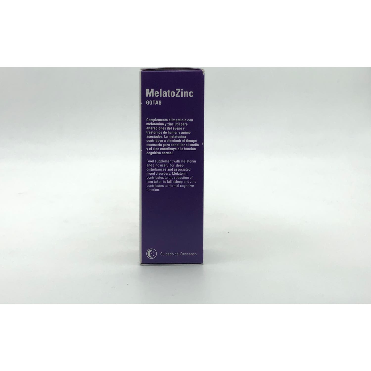 Complemento alimenticio en forma de gotas cuya fórmula contiene melatonina reforzada con zinc.