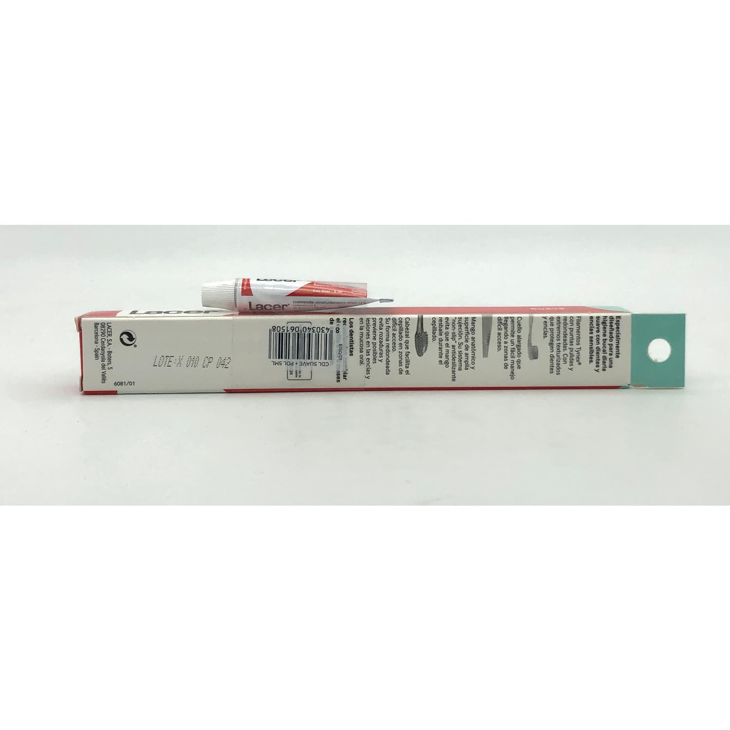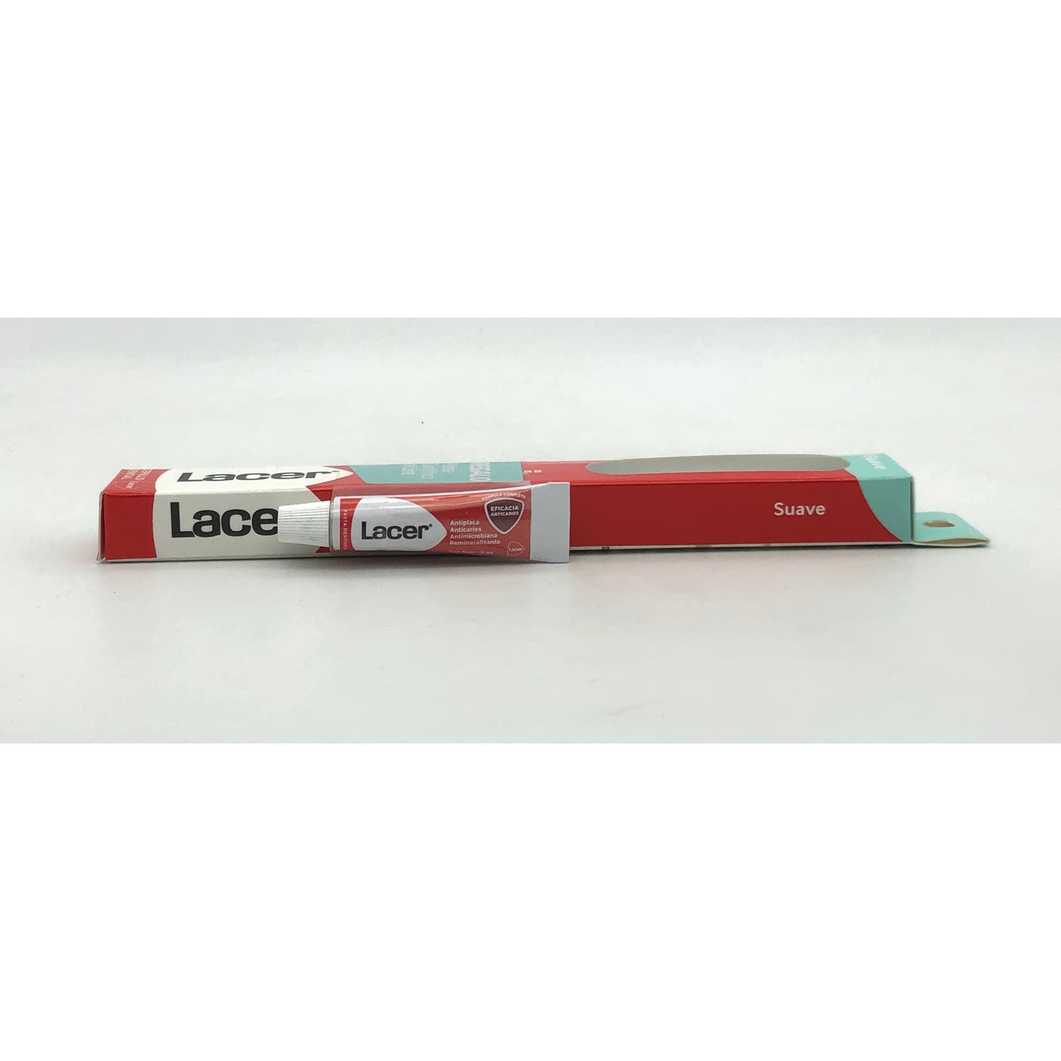 Lacer Cepillo Dental Suave + Pasta Dentífrica es un set de higiene bucodental compuesto por un cepillo dental suave para dientes y encías sensibles y una pasta de dientes de 5ml, que ayuda a prevenir la aparición de placa y refuerza el esmalte.