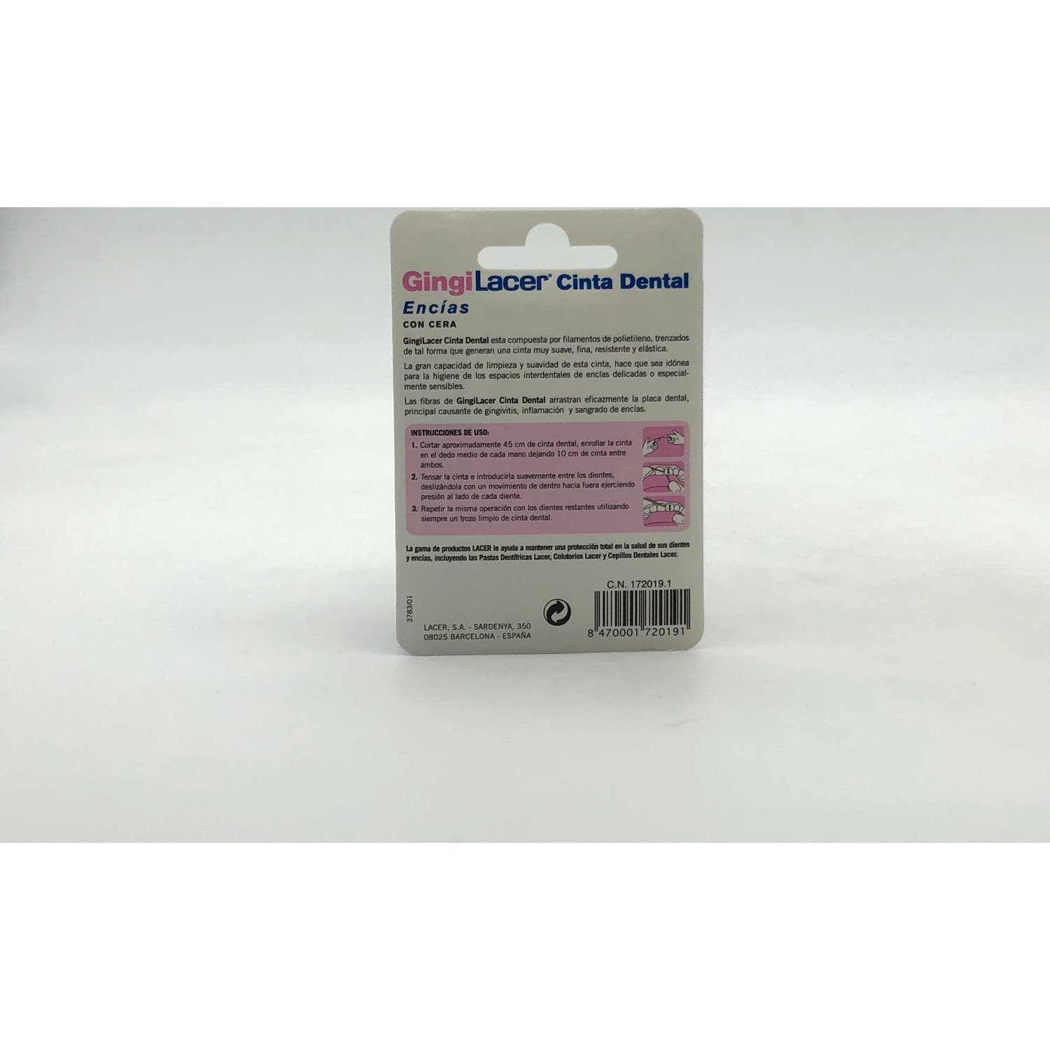 Lacer GingiLacer Cinta Dental Encías con Cera 50m es un hilo dental suave de filamentos de polietileno que facilita la higiene oral donde el cepillo de dientes no llega. Es resistente y elástica, y contiene cera para facilitar el deslizamiento en los espacios interdentales y proteger el esmalte y las encías delicadas.