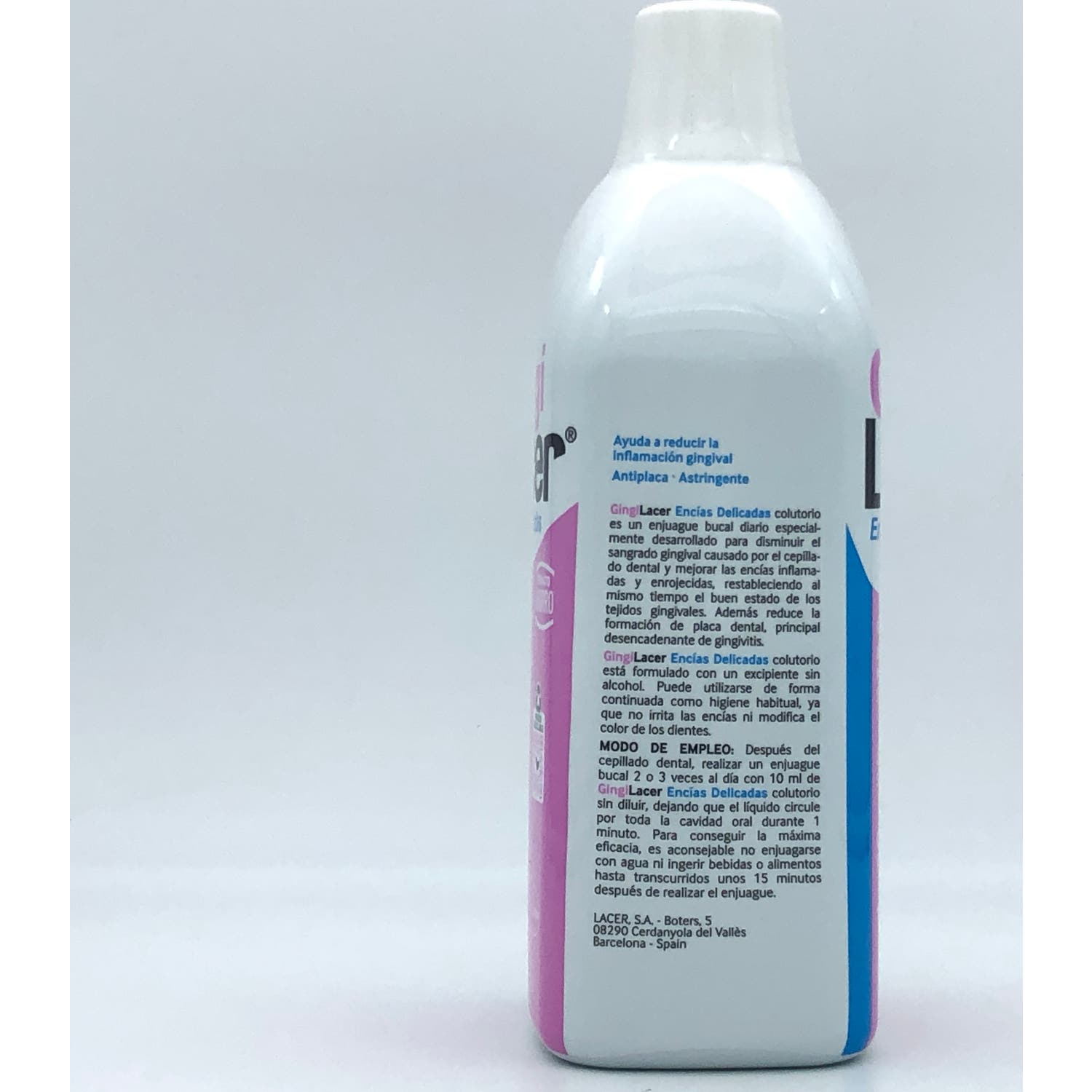 Lacer GingiLacer Encías Delicadas Colutorio 1000ml es un enjuague bucal diario antiplaca, con flúor y sin alcohol, que ayuda a prevenir el sangrado gingival causado por encías delicadas.