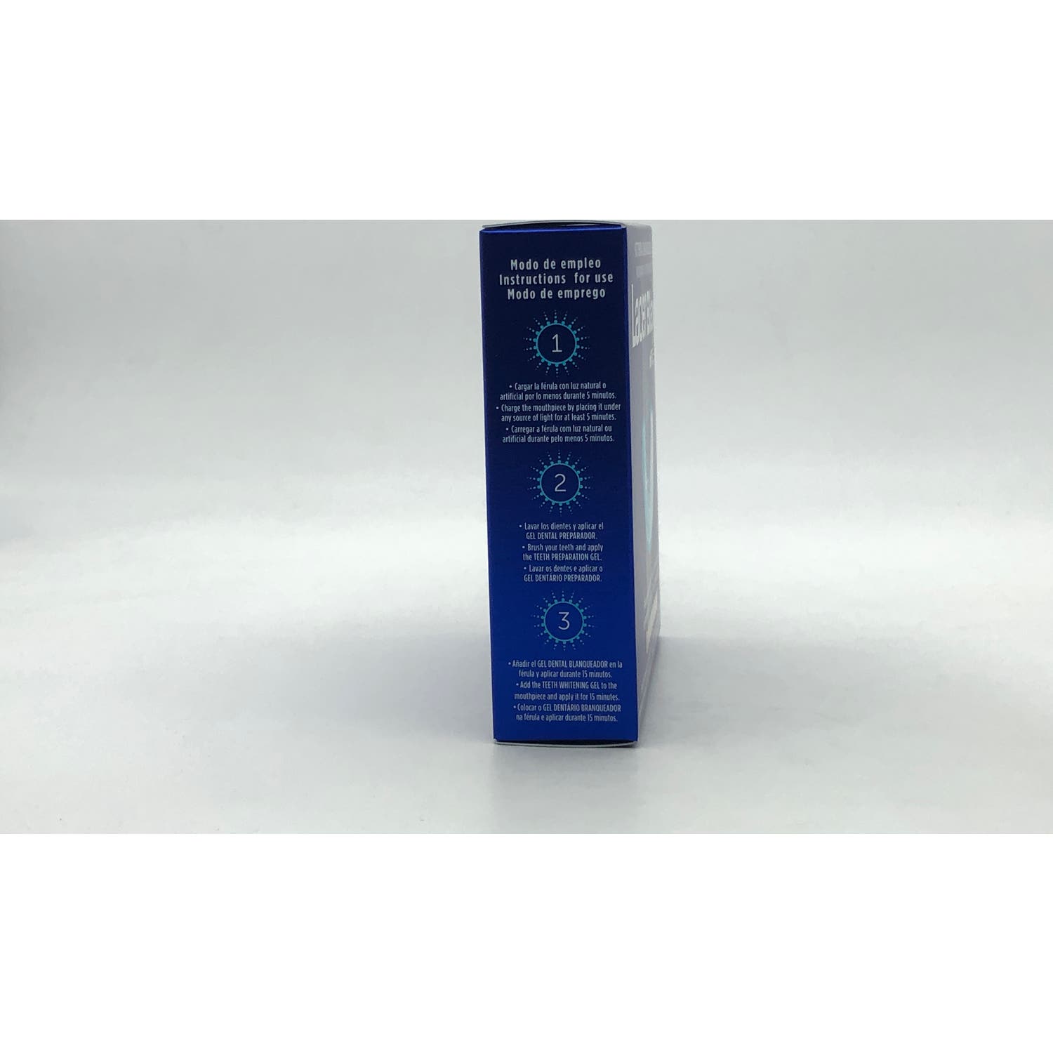 Contiene una férula fotoluminiscente, un gel preparador de 15ml y un gel dental blanqueador de 30ml. Cómodo y fácil de usar.