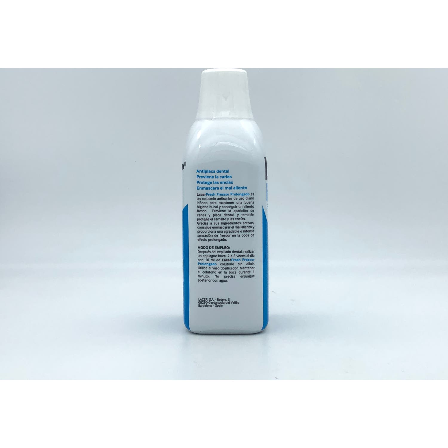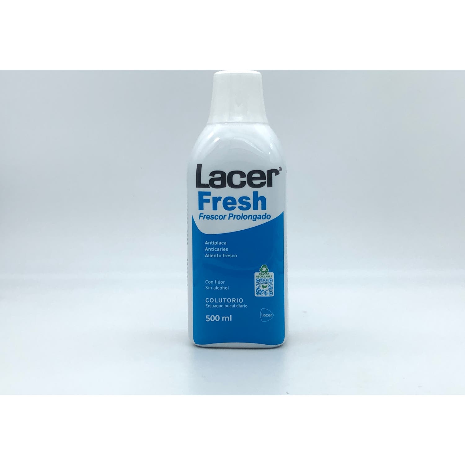 Lacer LacerFresh Frescor Prolongado Colutorio 500ml es un colutorio que realiza una higiene homogénea y repartida en cada una de las piezas dentales, ayudando a eliminar la placa bacteriana y a reducir la halitosis.