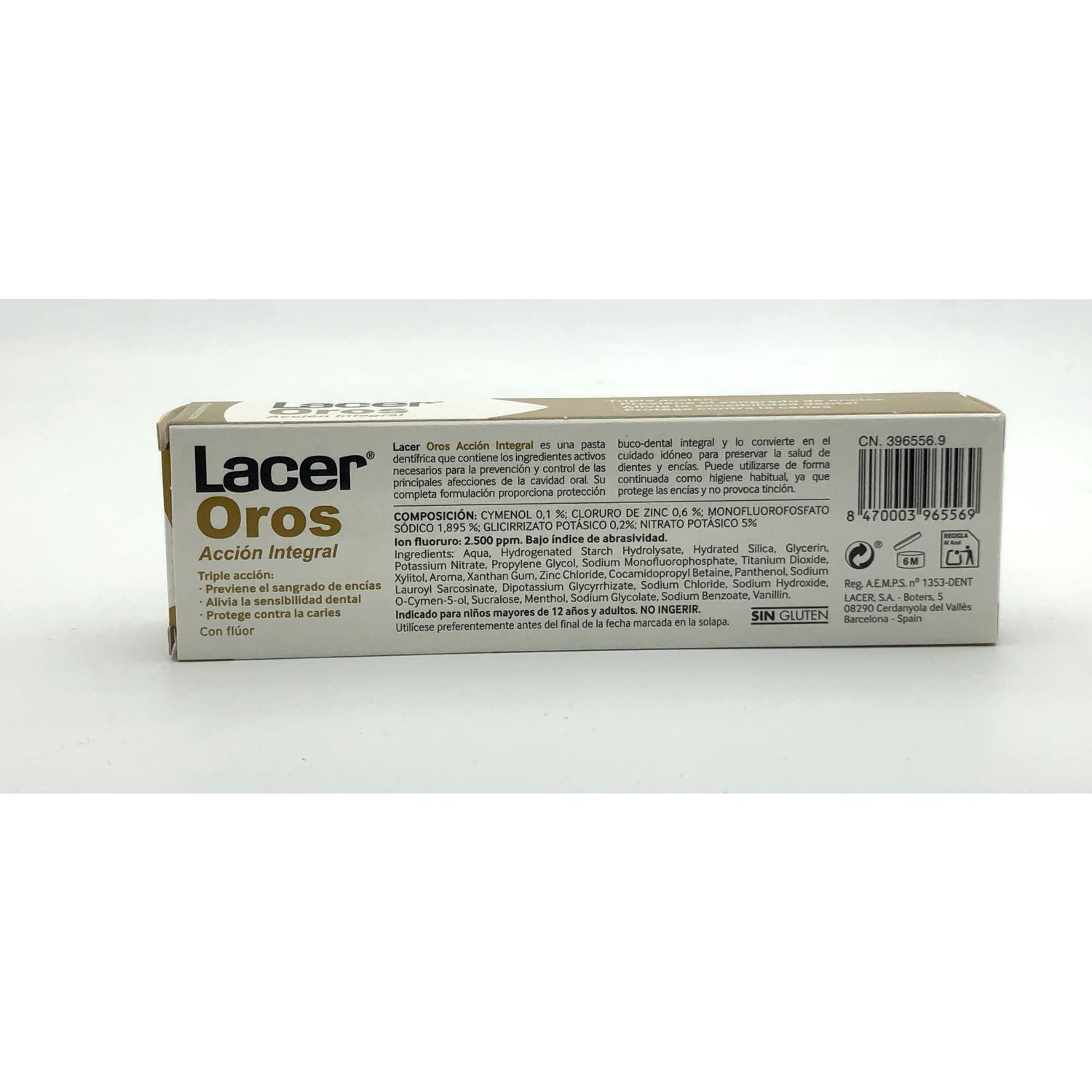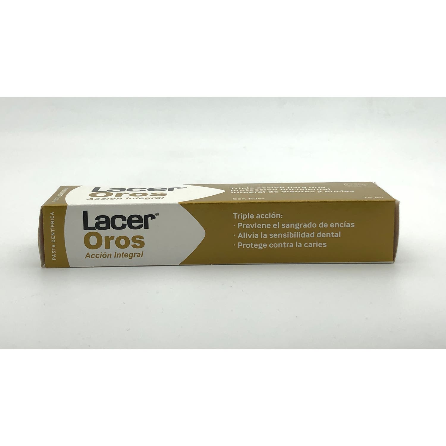 Lacer LacerOros Acción Integral Pasta Dentífrica 75ml es una pasta de dientes antiplaca con flúor de uso diario que ayuda a prevenir el sangrado gingival causado por encías delicadas.
