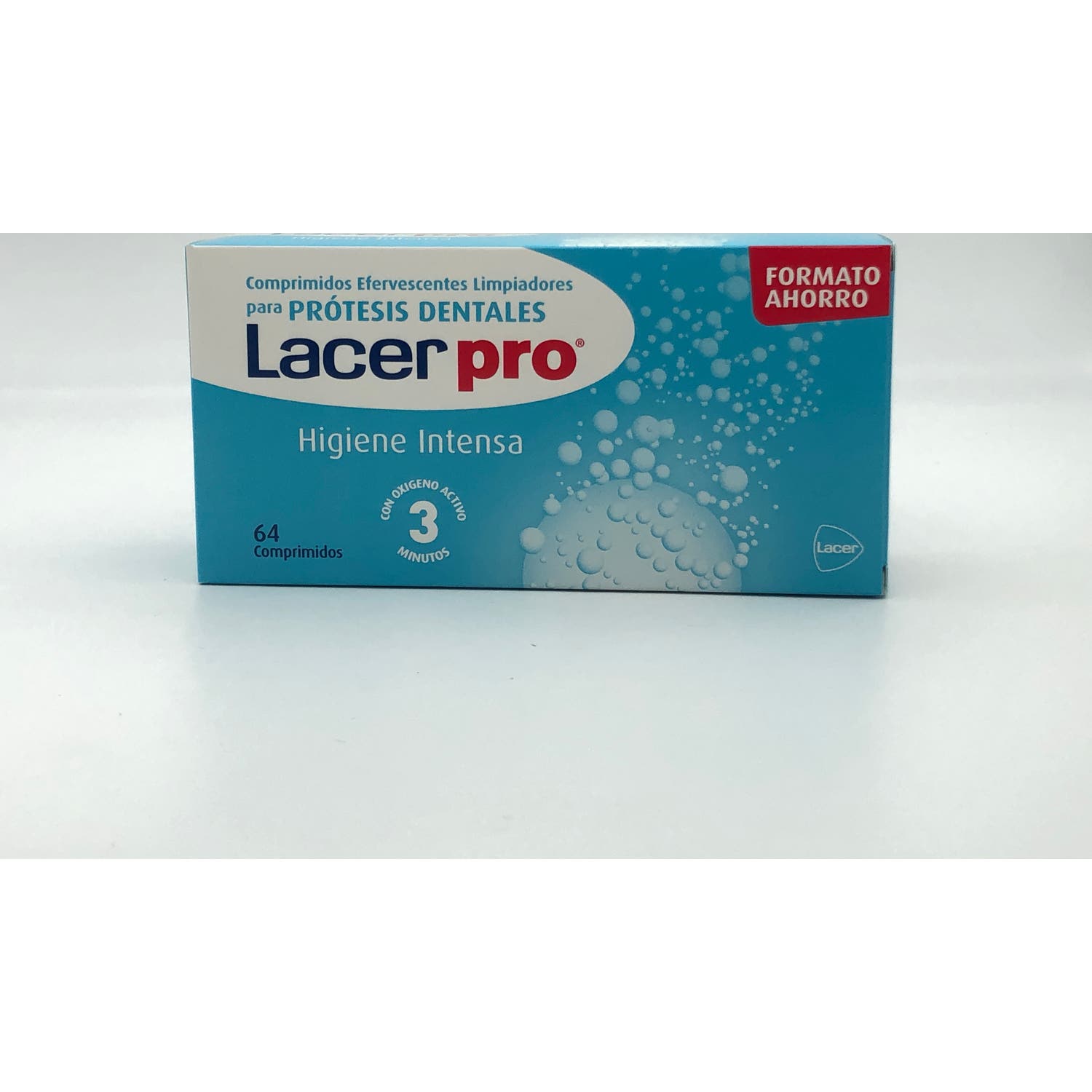 Lacer LacerPro Comprimidos Efervescentes Limpiadores 64comp son comprimidos que se disuelven en agua para facilitar la limpieza de prótesis dentales removibles.