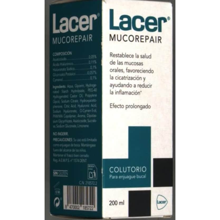Lacer Mucorepair Colutorio 200 ml es un colutorio diseñado para ofrecer una acción global en la salud de las mucosas orales. Este producto favorece la cicatrización y regeneración de los tejidos bucales, además de contribuir a la reducción de la inflamación y proporcionar una acción antimicrobiana.