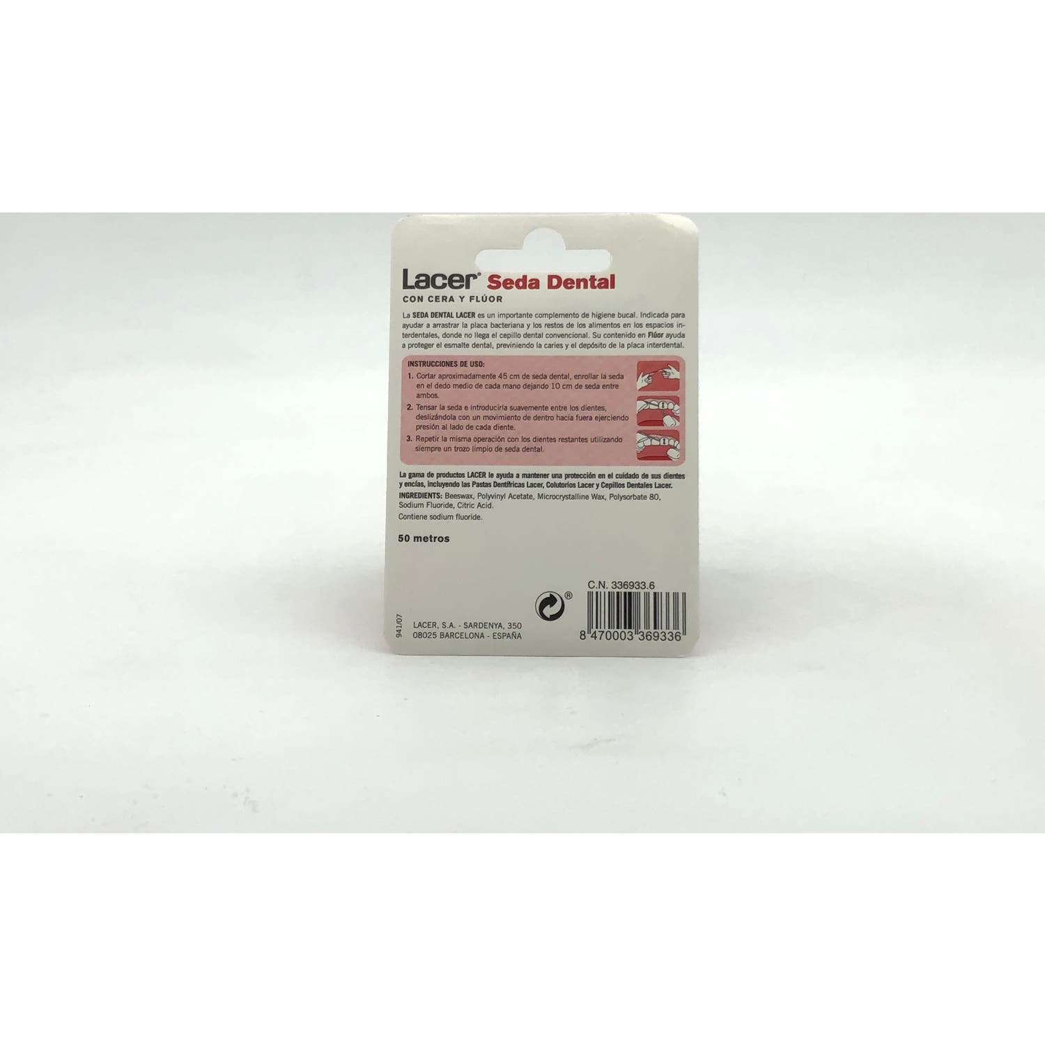 Lacer Seda Dental 50m es una seda dental permite una máxima higiene bucal, al limpiar los espacios interdentales. Su uso regular permite prevenir la gingivitis y las caries, asociadas a la acumulación de placa bacteriana en los espacios que quedan entre la encía y el diente.