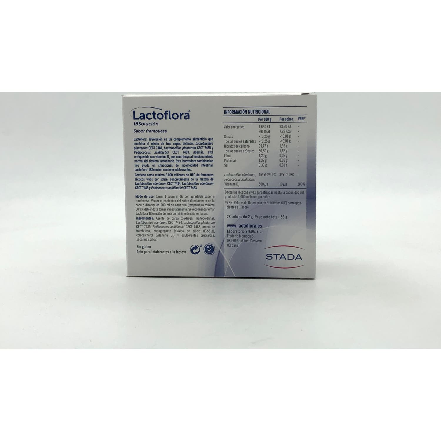 Lactoflora IBSolución Sabor Frambuesa 28 sobres es un complemento alimenticio que ayuda a reducir las molestias intestinales.