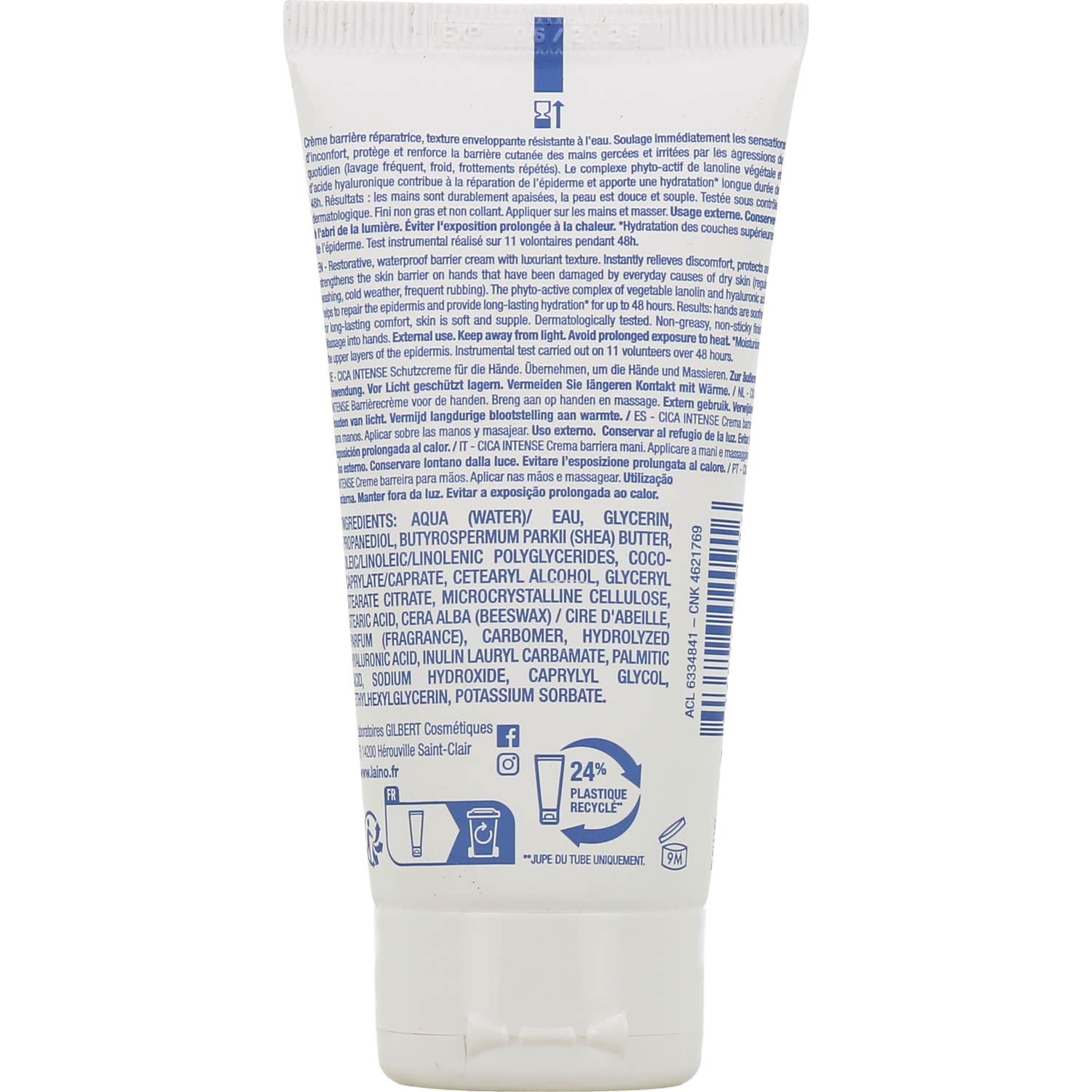 Laino Crema Manos Cica Intense 50ml es una crema restauradora con una textura lujosa que actúa como una barrera impermeable. Esta crema alivia instantáneamente las molestias y protege la piel, fortaleciendo la barrera cutánea de las manos que han sufrido daños por causas cotidianas de sequedad, como: