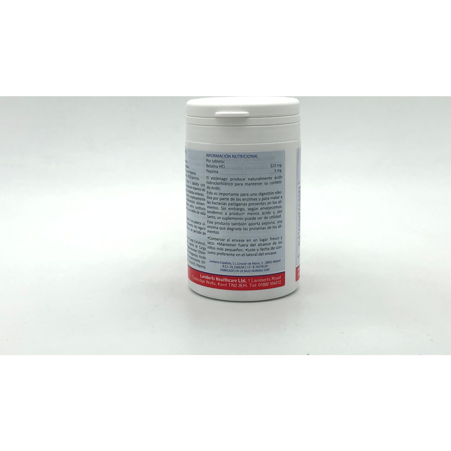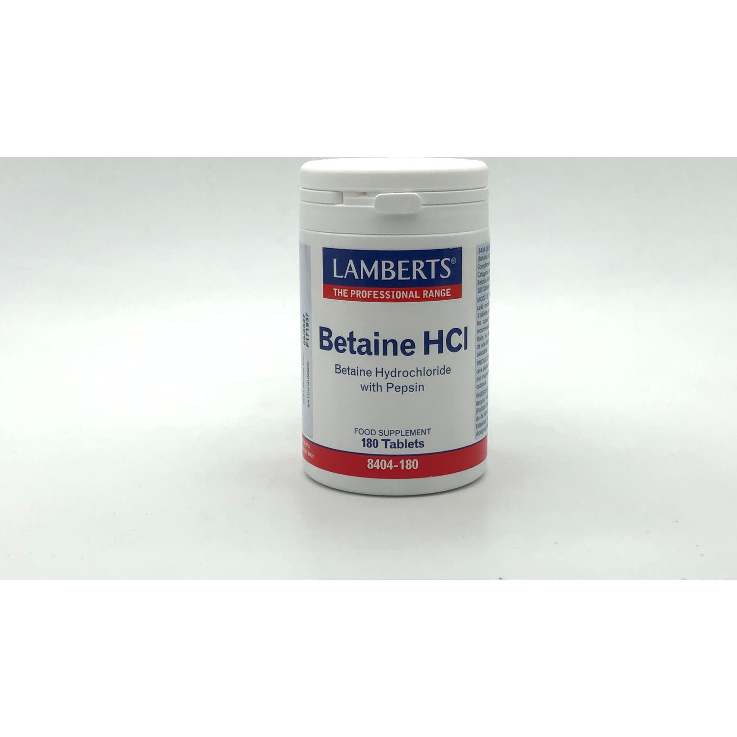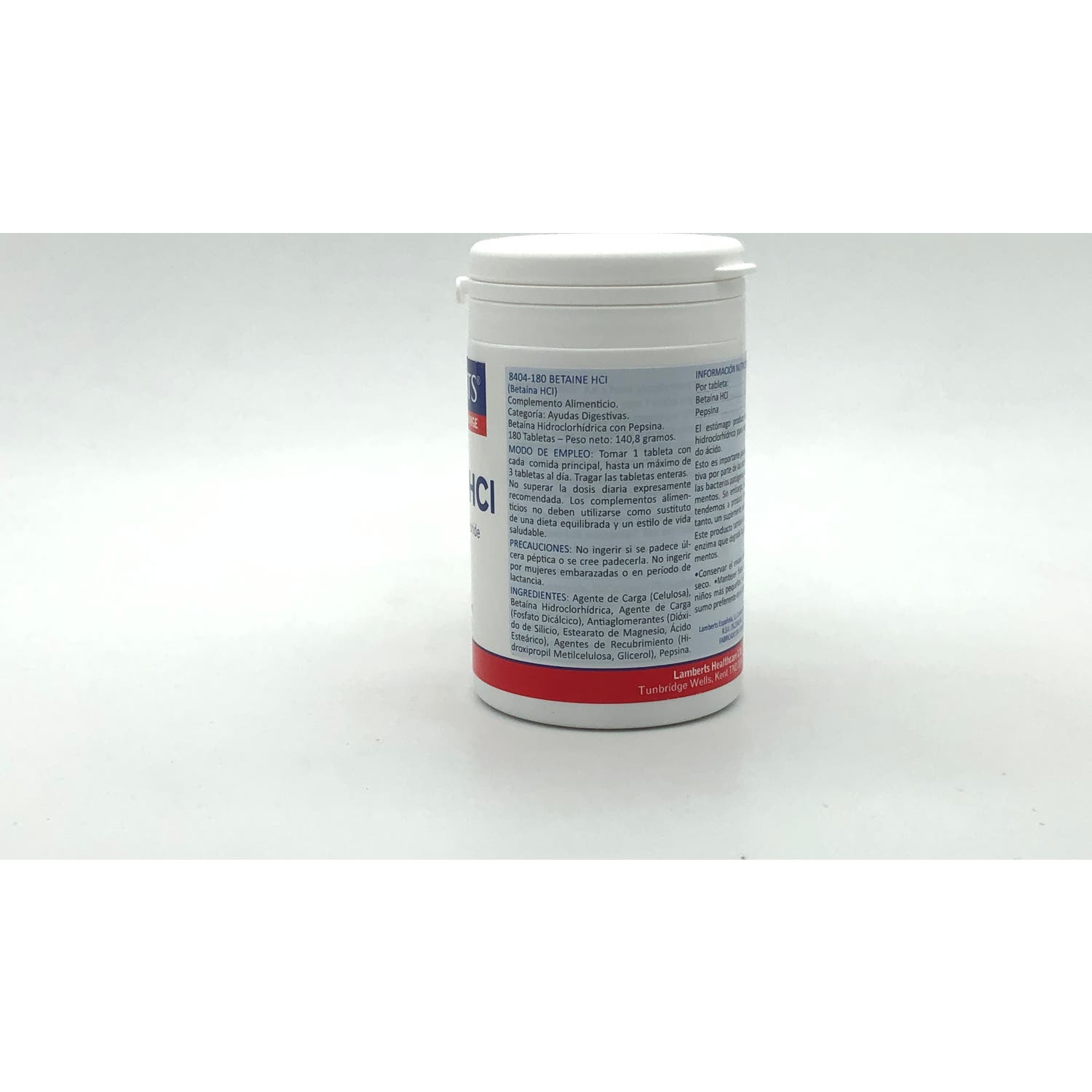 Lamberts Betaina HCL con Pepsina 180comp es un complemento alimenticio a base de ácido clorhídrico para facilitar la digestión.