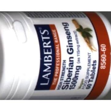 Lamberts Ginseng Siberiano 1500mg 60 Comp es un suplemento diseñado para aumentar la energía y la vitalidad, ideal para quienes buscan mejorar su resistencia física y mental durante periodos de sobrecarga emocional y/o fatiga. Este producto, con un extracto estandarizado, está dirigido a adultos activos que desean mantener un buen rendimiento diario y afrontar mejor el cansancio.