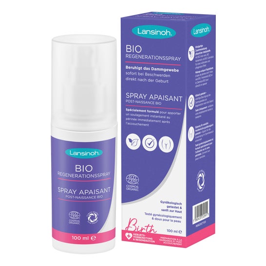 Loción corporal en spray formulada a base de extracto de manzanilla, pepino y aloe vera. Favorece el alivio de la zona perineal después del parto. Sus ingredientes tienen propiedades cicatrizantes y calmantes. Producto testado bajo control ginecológico, adecuado para todo tipo de piel, incluso la más sensible.