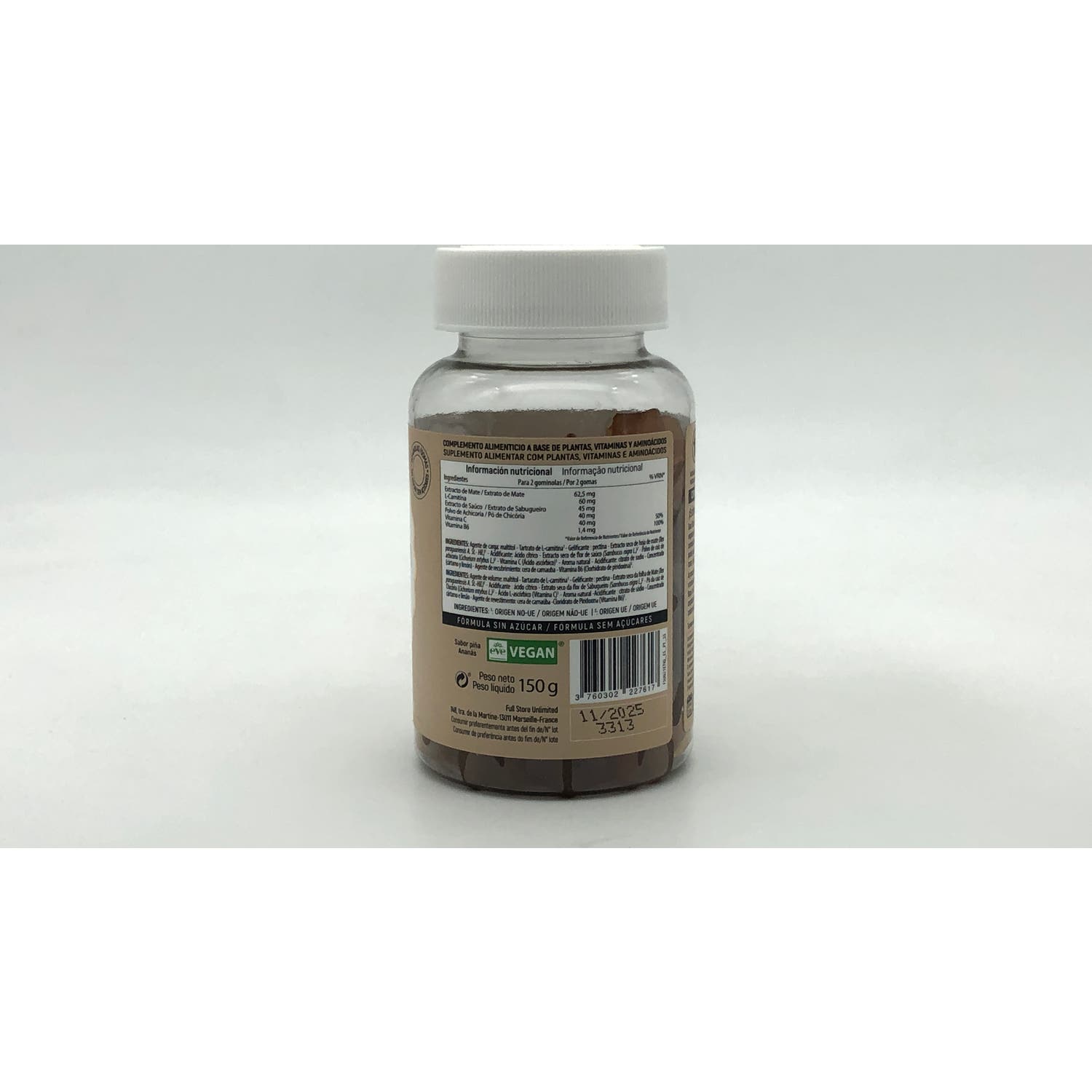 Es un producto 100% vegano. Se presenta en un práctico formato de gominolas masticables, con agradable sabor a piña. Hecho en Francia.