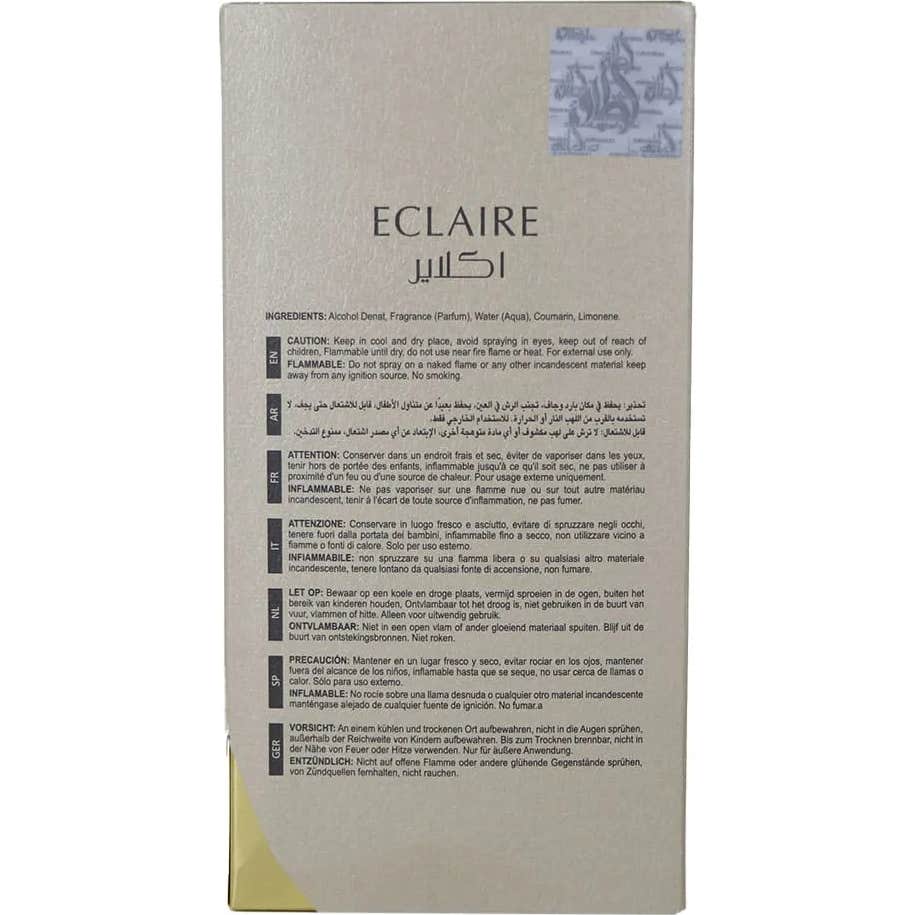 Lattafa Eclaire Eau de Parfum 100 ml es una fragancia gourmand unisex de aroma dulce y cremoso, pensada para destacar con elegancia en distintas ocasiones. Ofrece un perfil oriental cálido y una duración prolongada.