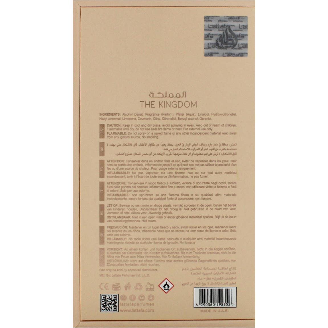 Lattafa The Kingdom Eau de Parfum 100 ml para hombres es una fragancia masculina que combina frescura aromática y calidez profunda. Ofrece una experiencia olfativa duradera y sofisticada, con una concentración del 10-20% de aceites esenciales para una estela potente durante horas.