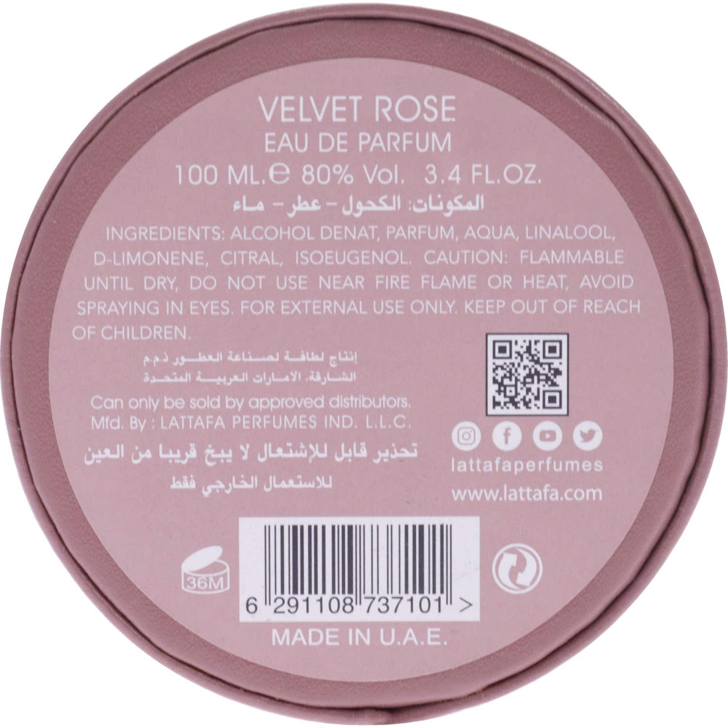 Lattafa Velvet Rose Eau de Parfum Spray 100 ml es una fragancia floral ambarina unisex, pensada para mujeres y hombres. Cuenta con una concentración del 10-20% de aceites esenciales, lo que aporta un aroma intenso y duradero, ideal para la temporada de otoño-invierno.
